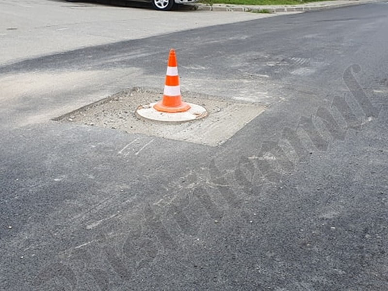 Întreaga stradă Magnoliei e plină de guri de canal, iar lucrările în jurul lor sunt neterminate. Localnicii au pus și un con reflectorizant în dreptul „gurii de canal eco”, dar și în dreptul unei alte guri de canal care riscă să se surpe.