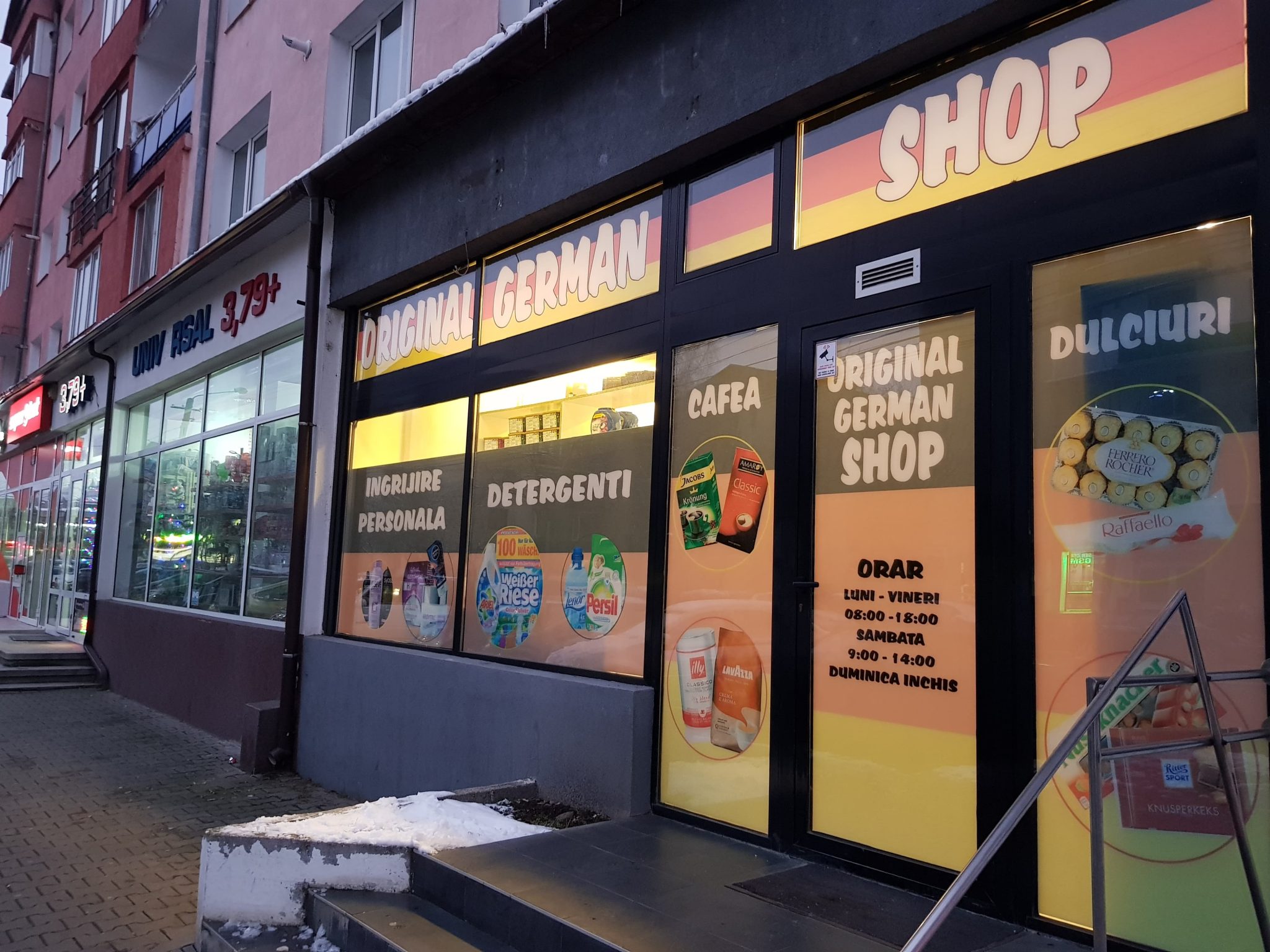 Detergenți de haine, balsamuri pentru rufe, detergenți de vase, produse de îngrijire personală, conserve, dulcețuri, miere de agave, cel mai căutat muștar de casă produs de nemți, ciocolate fine, napolitane, ba chiar și pachete cu cadouri numai bune de pus în ghetuțele celor cuminți, de toate găsiți începând de mâine dimineață în magazinul ORIGINAL GERMAN SHOP, de pe Bulevardul Decebal, din Bistrița. Magazinul va fi deschis de Luni până Vineri între orele 08:00 – 18:00, iar sâmbăta între 9:00 și 14:00.