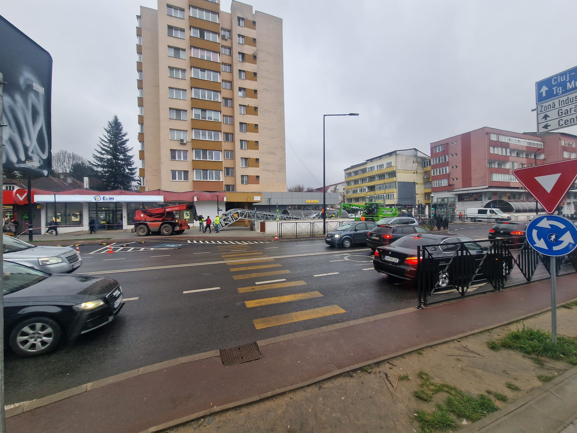 Agitație astăzi, în zona Decebal. Macarale, trailere, schelete de metal…- toate în organizarea șantierului din zona pasajelor de la intersecția străzilor Decebal, Ursului și Cuza Vodă.