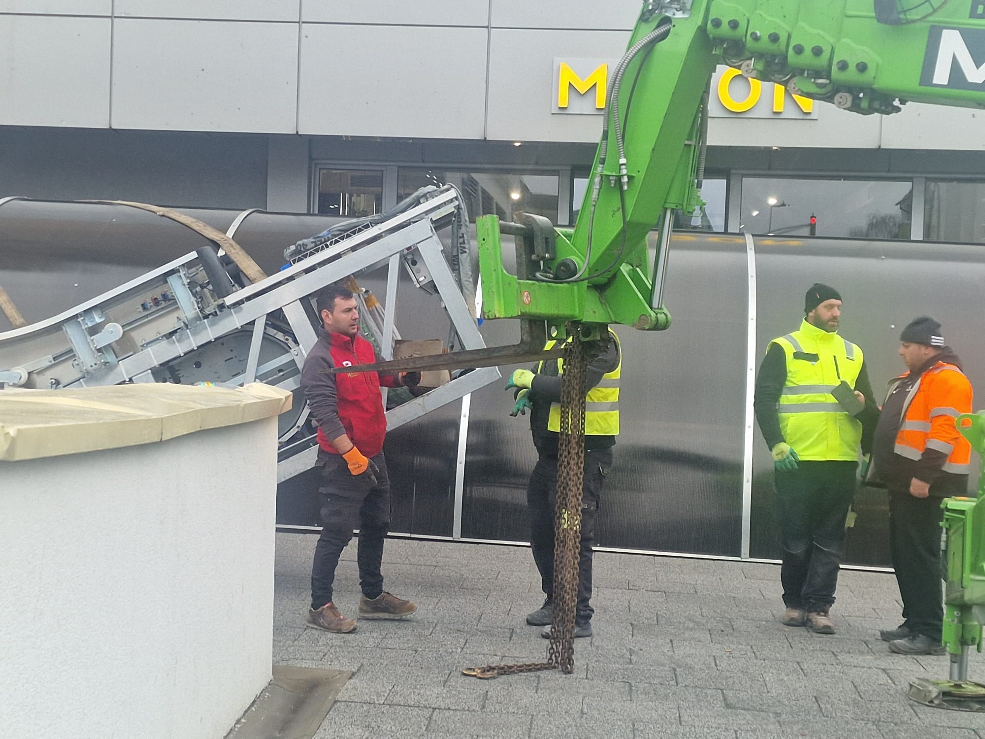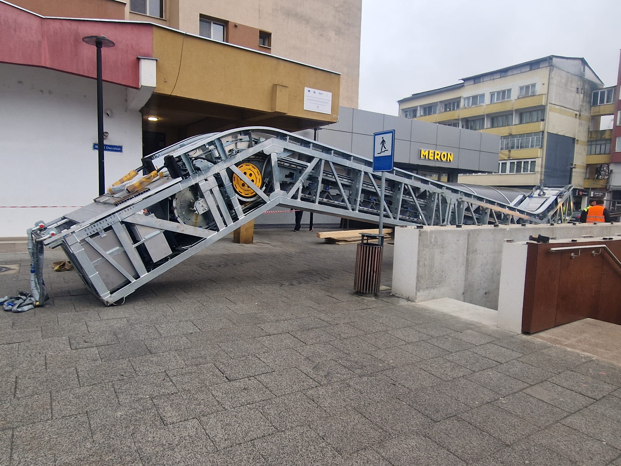 La loc comanda! Ca să pună scările rulante, se iau jos copertinele de la pasajul din Decebal