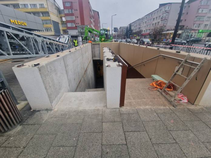Au început lucrările de montare a scărilor rulante care coboară și ies din pasajul pietonal subteran.
