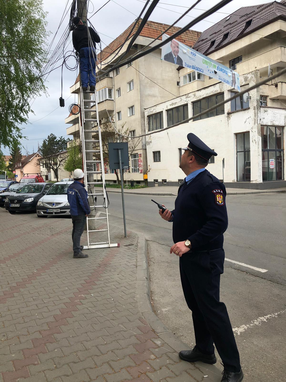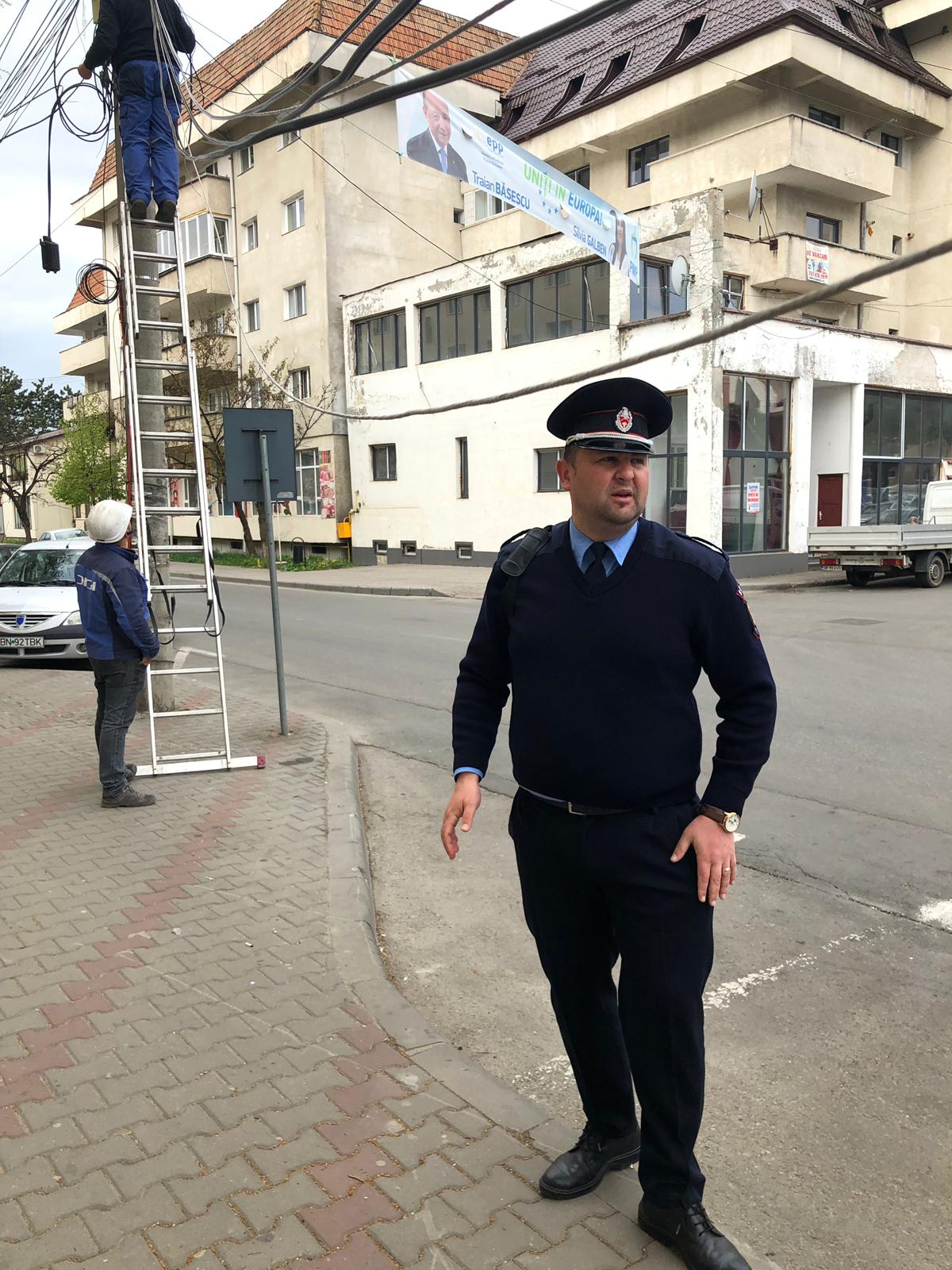 Cei de la Serviciul Voluntar pentru Situații de Urgență s-au prezentat, în frunte cu șeful unității, și au ridicat cablurile.