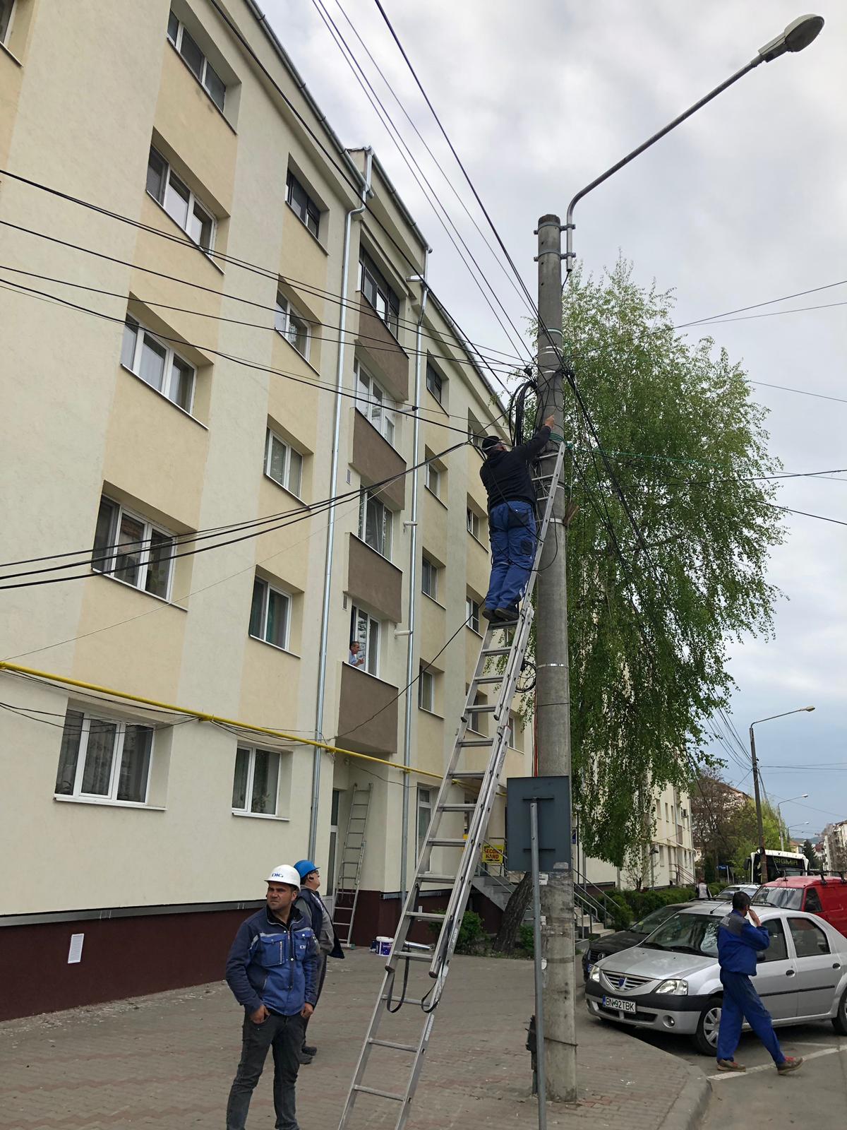 După ce cablurile de pe strada Rodnei puteau produce o tragedie, de zile bune blocând un trotuar, astăzi s-a-ntâmplat minunea!