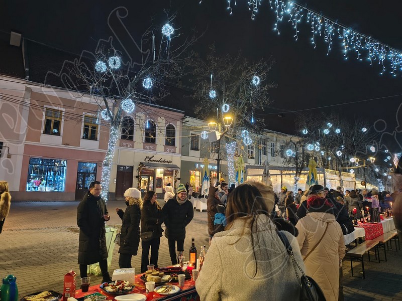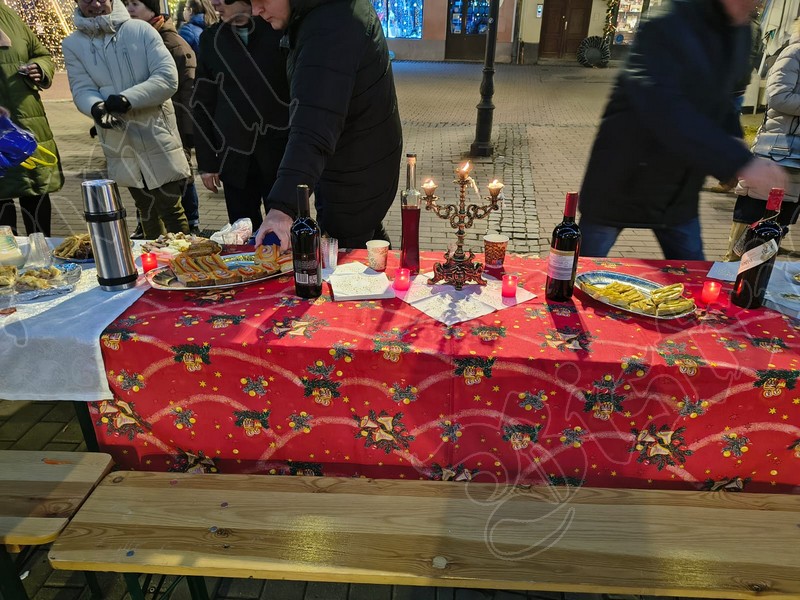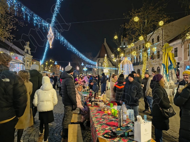 Pietonalul Liviu Rebreanu din Bistrița s-a animat ca prin farmec, astă-seară, la Cina comunitară organizată în inima orașului. Zeci de mese unite și decorate impresionant și pline de bunătăți de Crăciun i-au ademenit nu doar pe bistrițeni, ci și pe turiștii italieni sau spanioli aflați în trecere.