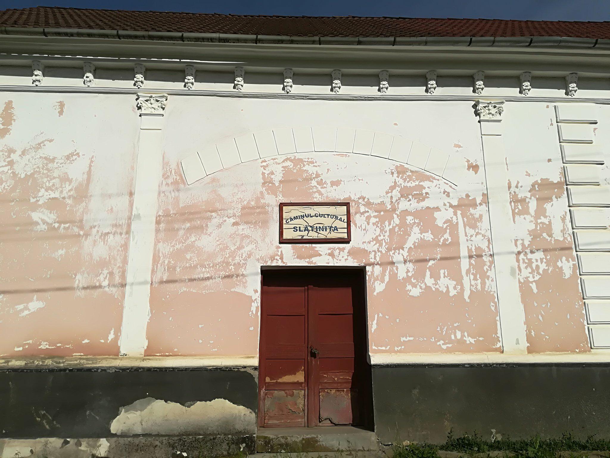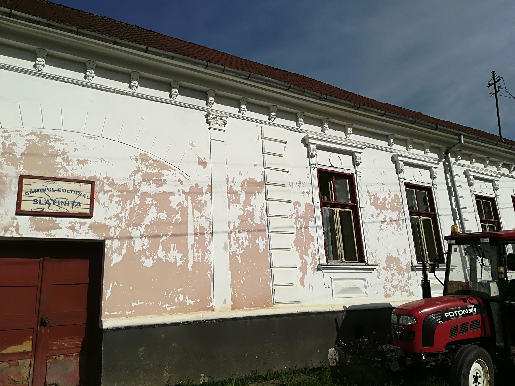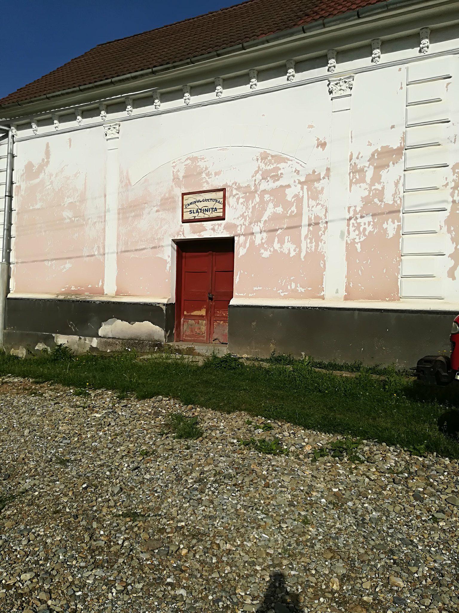Am fost din nou în Slătinița și am făcut multe poze la Căminul Cultural. Un cămin dezastruos, cade tencuiala pe oameni, soba nu merge, parchetul e peticit peste podele. Doar înmormântări se mai pot face acolo, și și alea, cu frică”, mi-a spus ajutorul meu.