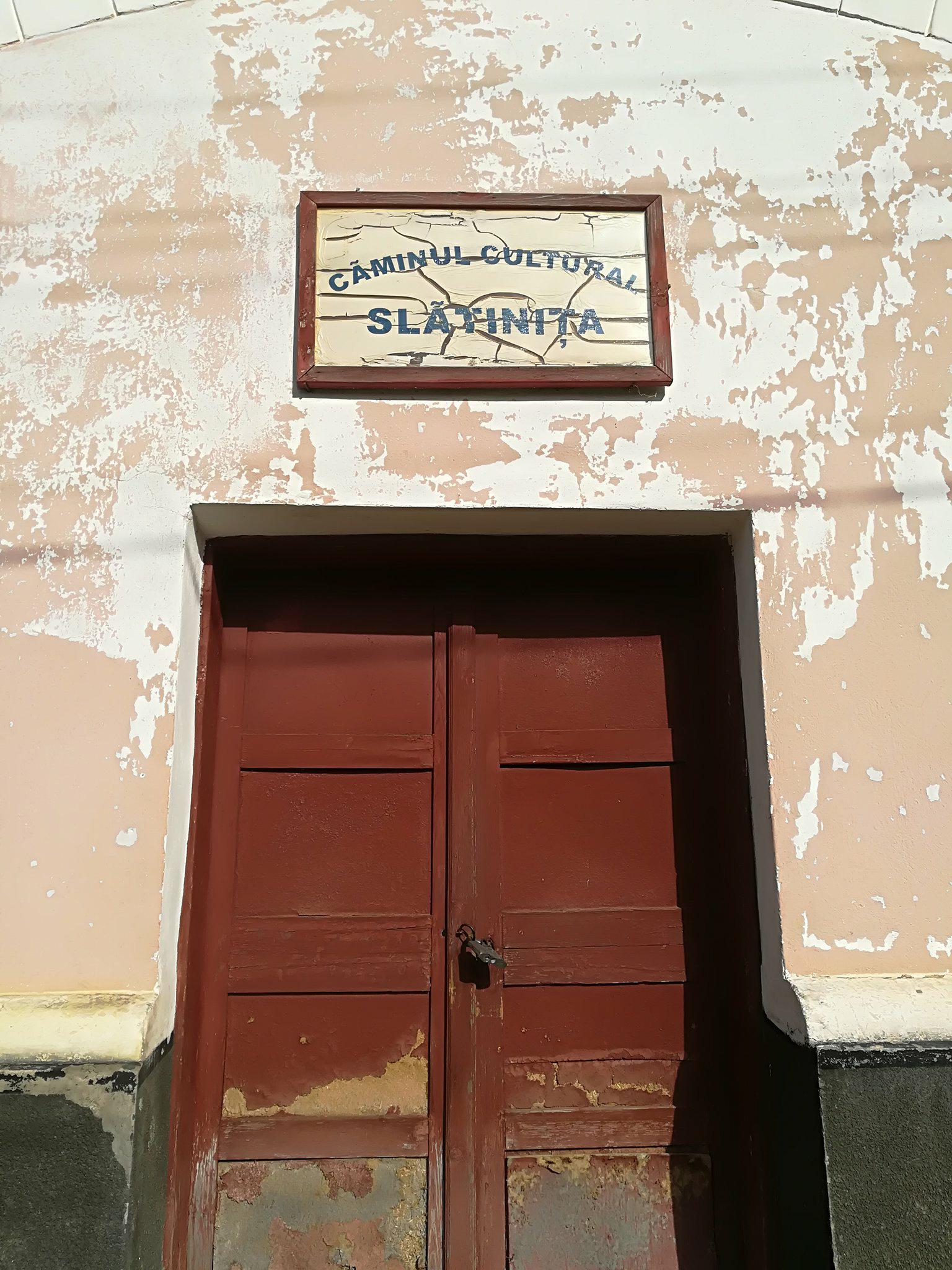 „Am fost din nou în Slătinița și am făcut multe poze la Căminul Cultural. Un cămin dezastruos, cade tencuiala pe oameni, soba nu merge, parchetul e peticit peste podele. Doar înmormântări se mai pot face acolo, și și alea, cu frică”, mi-a spus ajutorul meu.