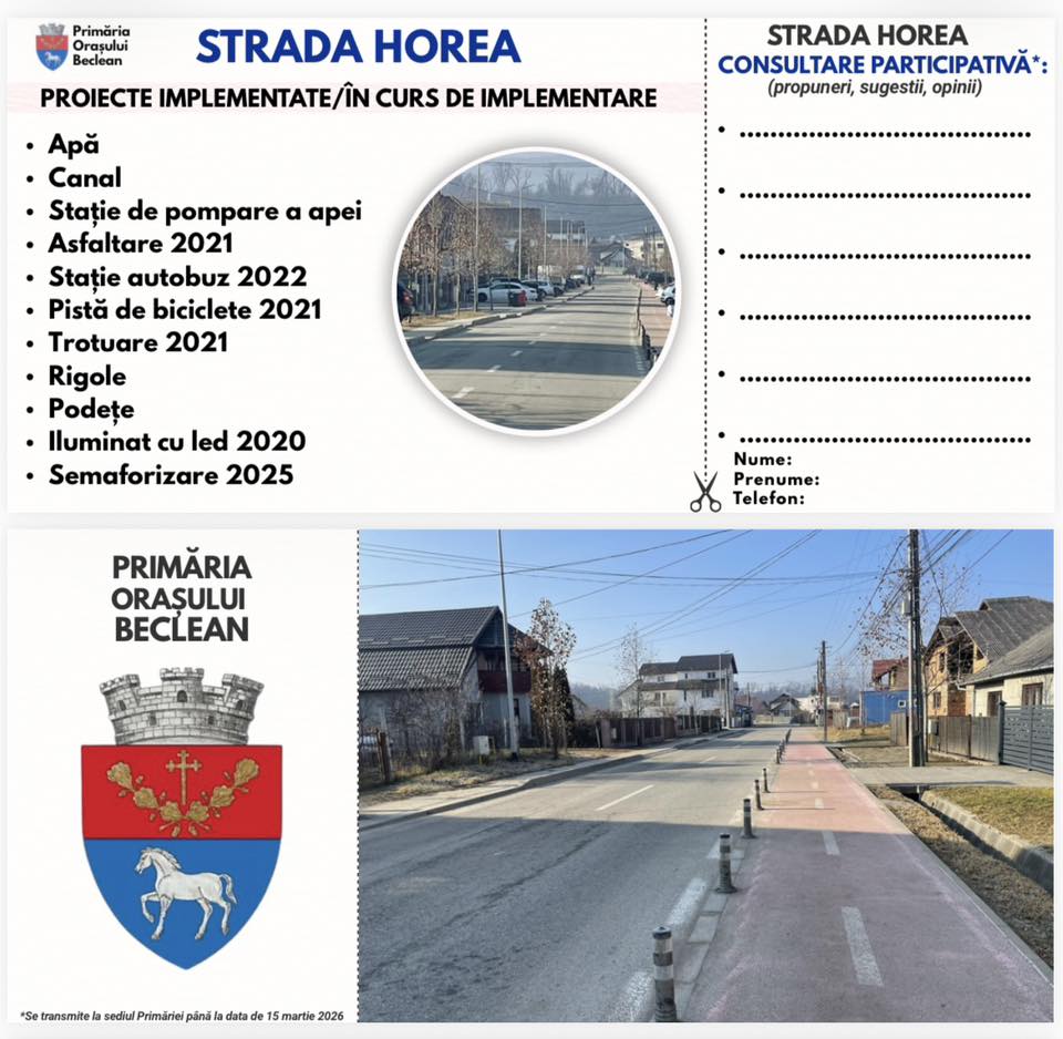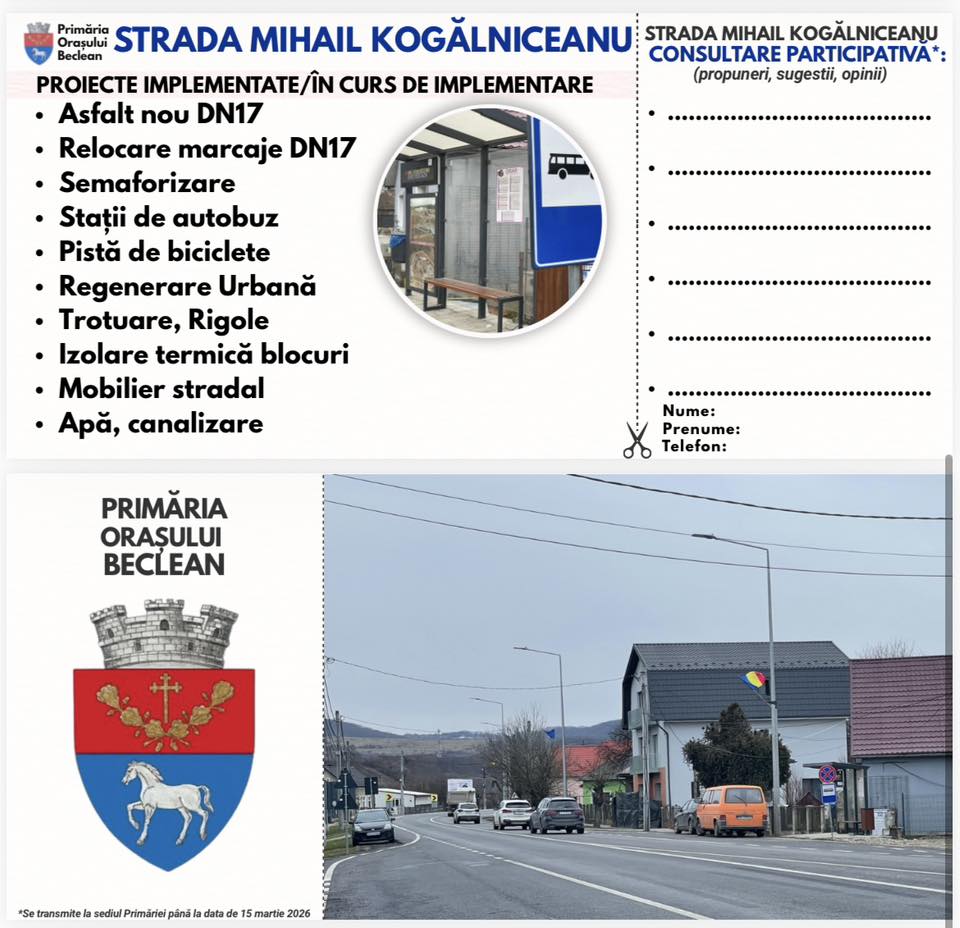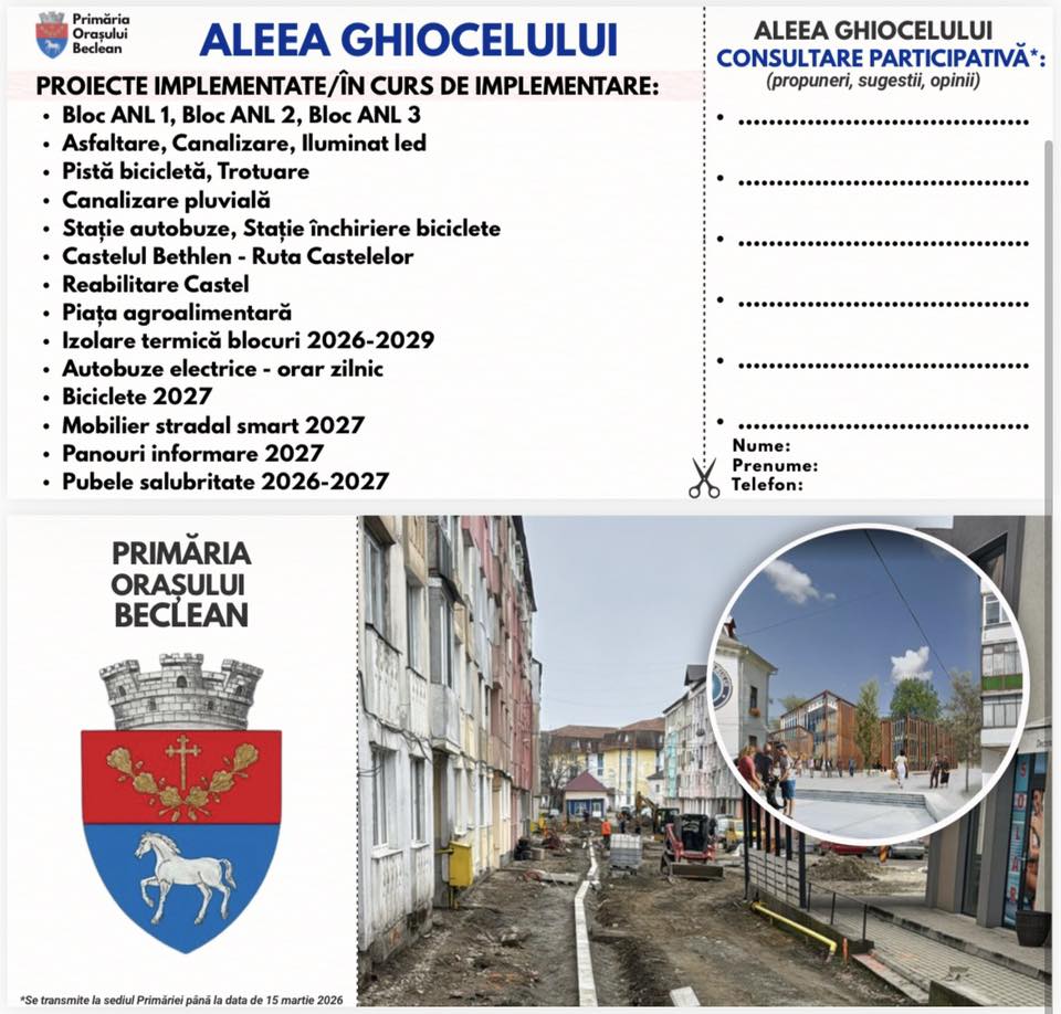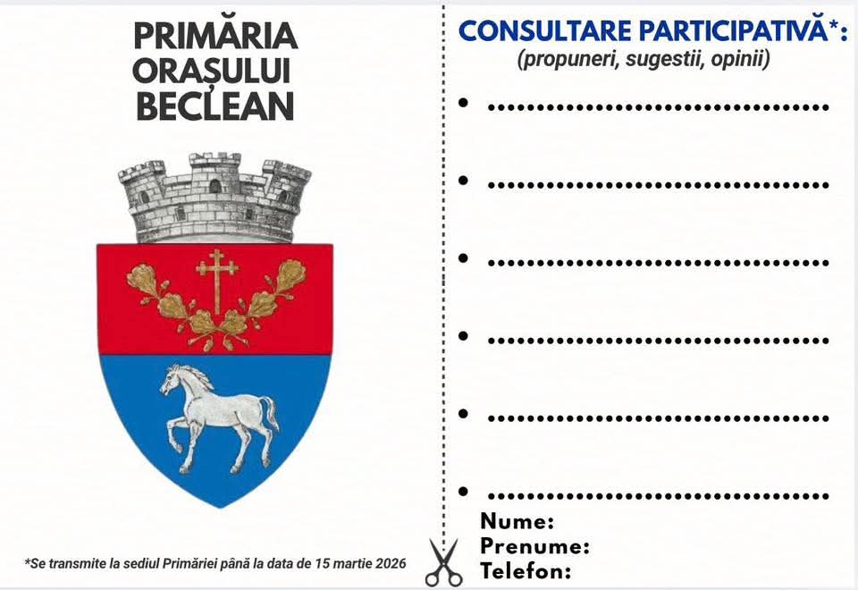 Primăria Beclean a lansat o campanie de consultare participativă pentru a aduna propuneri, sugestii și opinii care să oglindească nevoile reale ale locuitorilor.