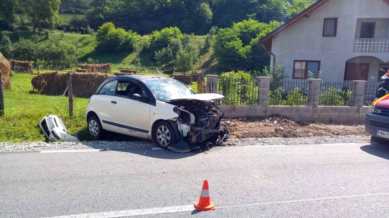 O mașină a fost avariată serios în urma unui accident rutier.