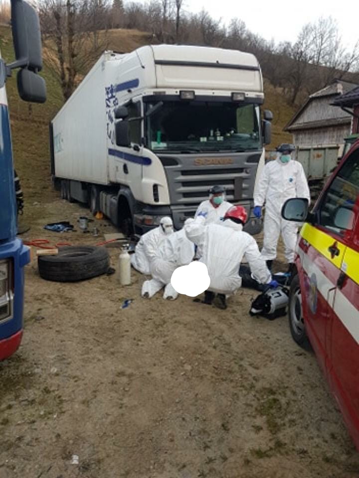 Echipajele medicale și ale pompierilor au fost solicitate să intervină de urgență în localitatea Ilva Mică unde o persoană a fost surprinsă sub un TIR.