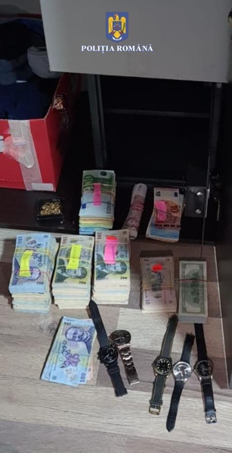 Polițiștii au confiscat și peste jumătate de milion de lei: 415.000 de lei, aproximativ 172.000 de euro și aproape 26.000 de dolari. Oamenii legii au mai ridicat bijuterii, două arme letale și muniție, 3 cutii cu articole pirotehnice, acte, articole vestimentare și de îngrijire personală.