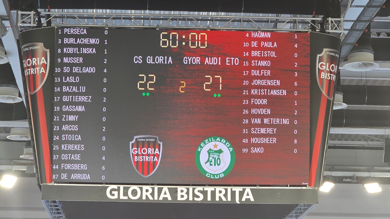 Echipa de handbal feminin CS Gloria Bistrița a disputat partida din Liga Campionilor, acasă în Teraplast Arena, în fața unei echipe extrem de valoroase, Gyori Audi ETO KC, câștigătoarea trofeului în ultimele două ediții și liderul grupei A.