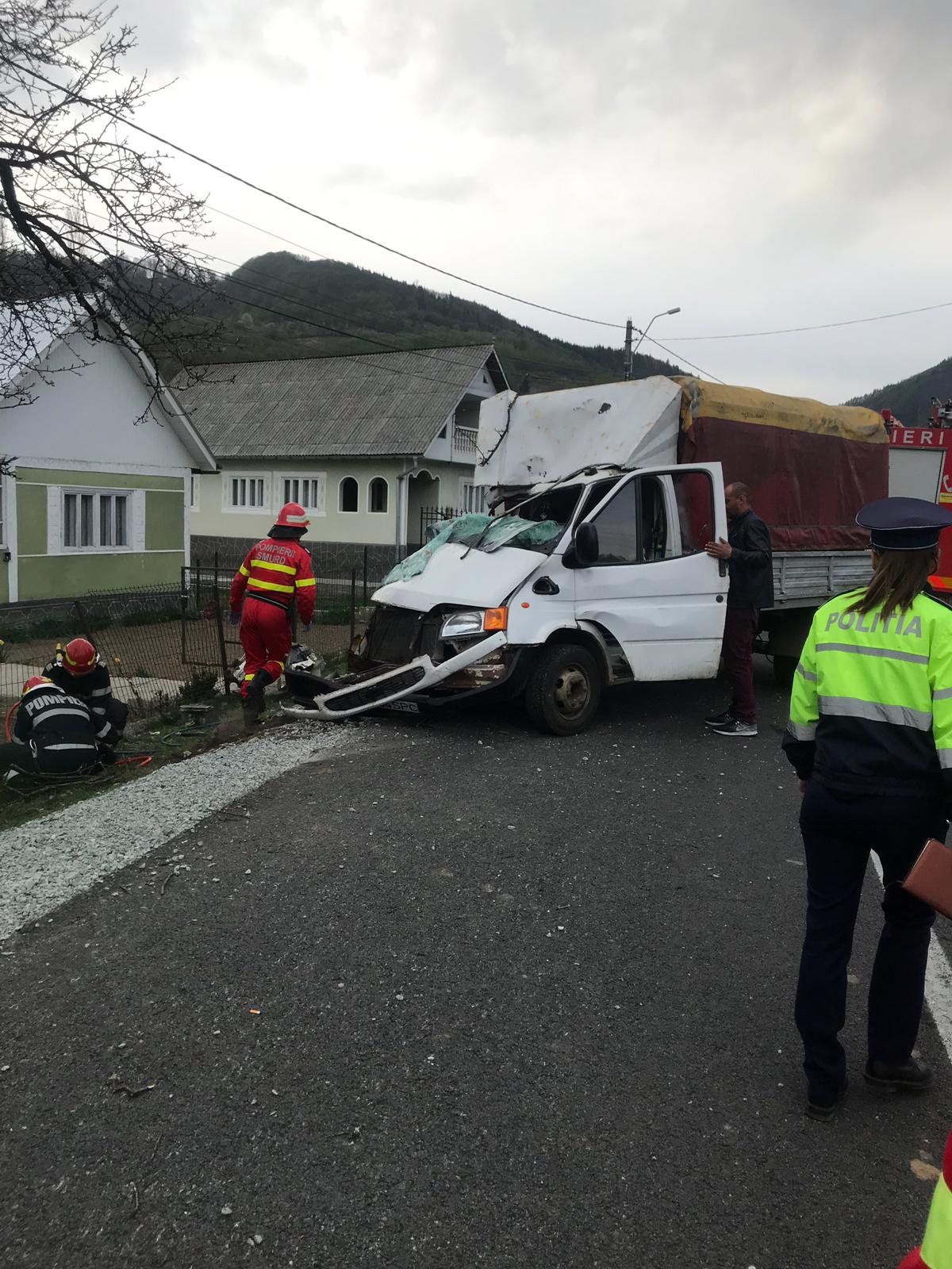 În urma impactului, o femeie, pasageră în camionetă, a rămas încarcerată între fiarele contorsionate ale autoturismului și a avut nevoie de ajutorul pompierilor militari pentru a se elibera.
