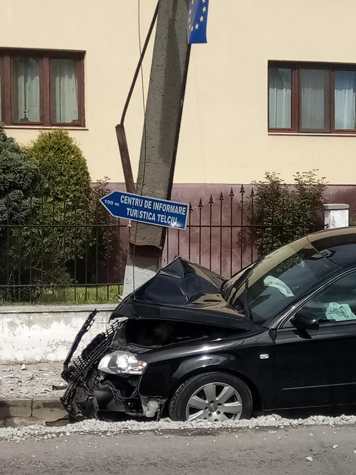 Un tânăr de 18 ani a provocat în urmă cu puțin timp un accident rutier pe DN17C, în localitatea Telciu. Acesta a pierdut controlul volanului, din cauza neatenției, și a lovit un stâlp de electricitate, pe care mai că l-a pus la pământ.