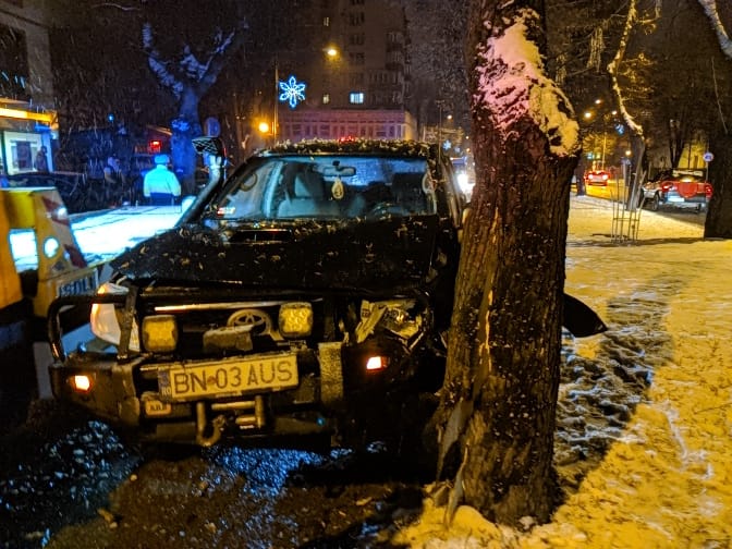 În urmă cu puțin timp a avut loc un accident rutier, pe Bulevardul Republicii. Un autoturism de teren a fost la un pas să rupă un copac, după ce a fost izbit de o altă mașină. Șoferul care a cauzat accidentul a intrat pe bulevard fără să se asigure.