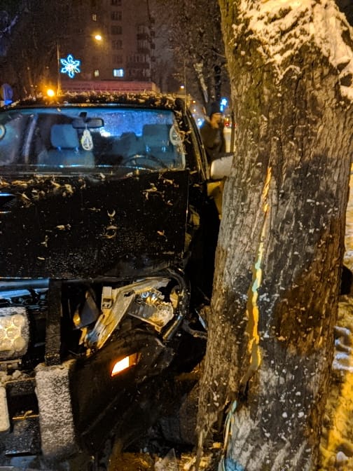 În urma impactului, autoturismul de teren a fost împins într-un copac de pe mijlocul bulevardului, pe care a fost la un pas să îl rupă. Din fericire nimeni nu a fost rănit.