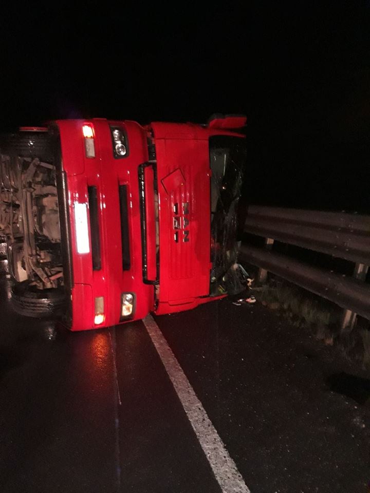 TIR-ul este înmatriculat în județul Suceava. Se pare că șoferul avea cu el un cățeluș, care a fost salvat de către pompieri. Aceștia au fost nevoiți să spargă geamul cabinei pentru a putea intra și salva animalul.