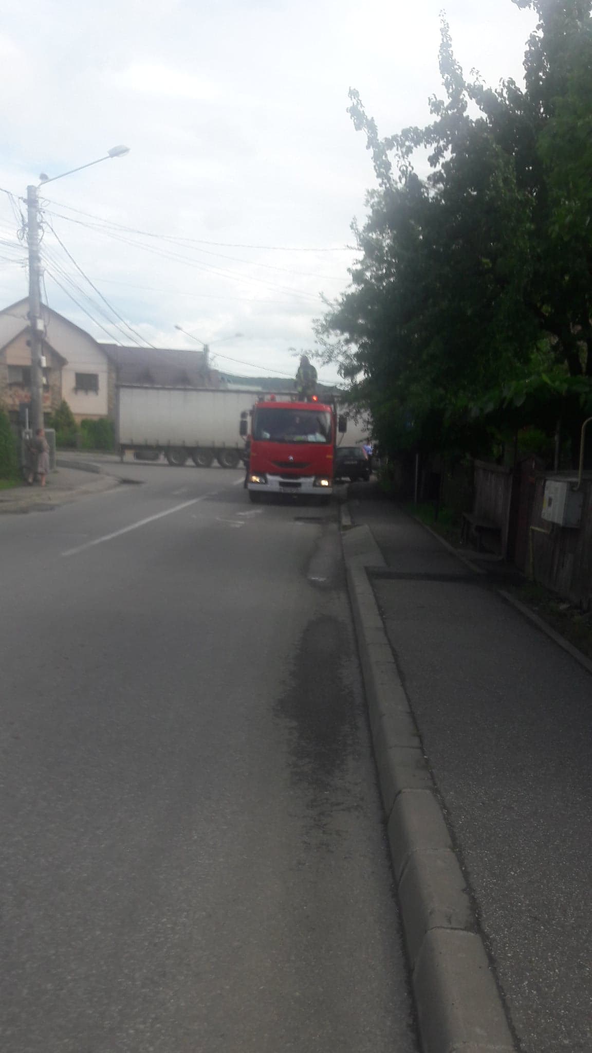 Traficul în sensul giratoriu de la intersecția Drumului de centură cu Subcetate a fost îngreunat preț de zeci de minute. Un TIR înmatriculat în Bulgaria nu a frânat la timp, izbind mașina unei bistrițence, care circula regulamentar.