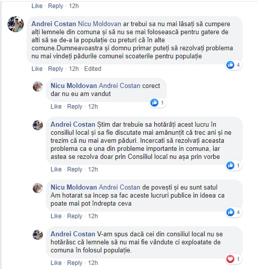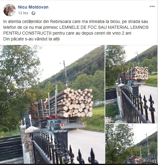 „În atenția cetățenilor din Rebrișoara care mă întreabă la birou, pe stradă sau telefon de ce nu mai primesc LEMNELE DE FOC SAU MATERIAL LEMNOS PENTRU CONSTRUCȚII pentru care au depus cereri de vreo 2 ani. Din păcate s-au vândut la alții”, a scris Nicu Moldovan pe pagina sa de Facebook.