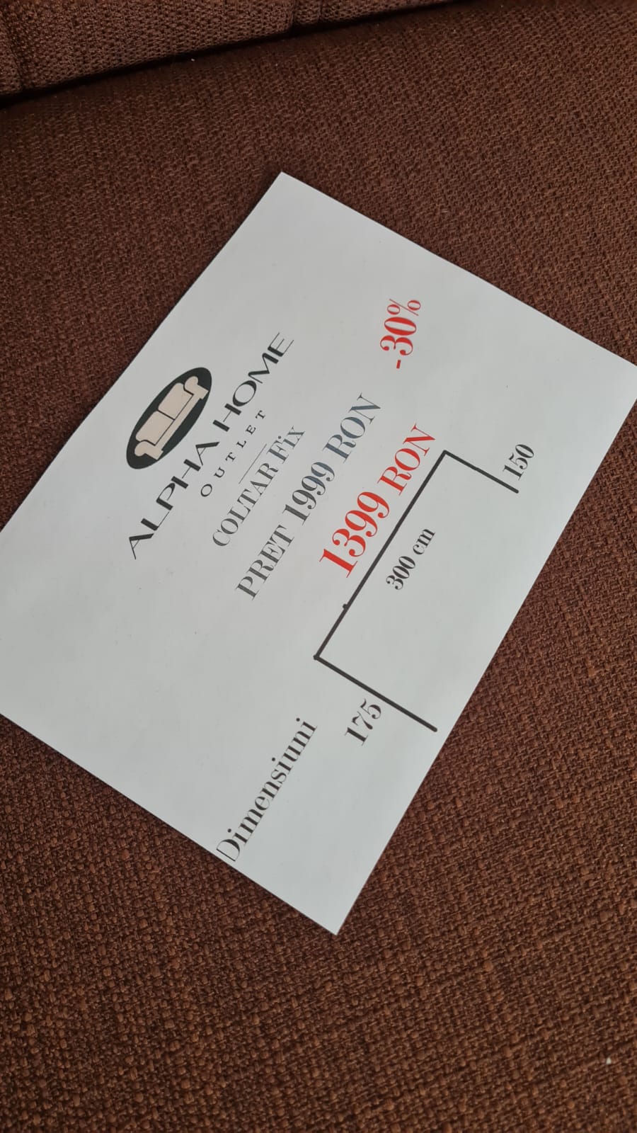 Informații despre oferte și stoc puteți primi și la numărul de telefon 0747 431 314 sau 0752 699 642. De asemenea puteți vedea produsele și pe pagina de Facebook a celor de la Alpha Home Outlet.
