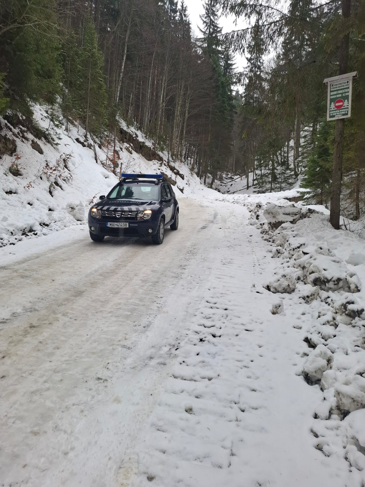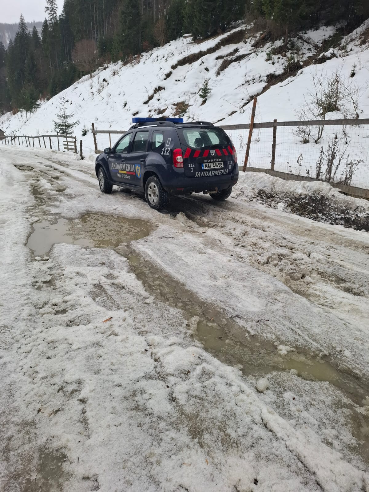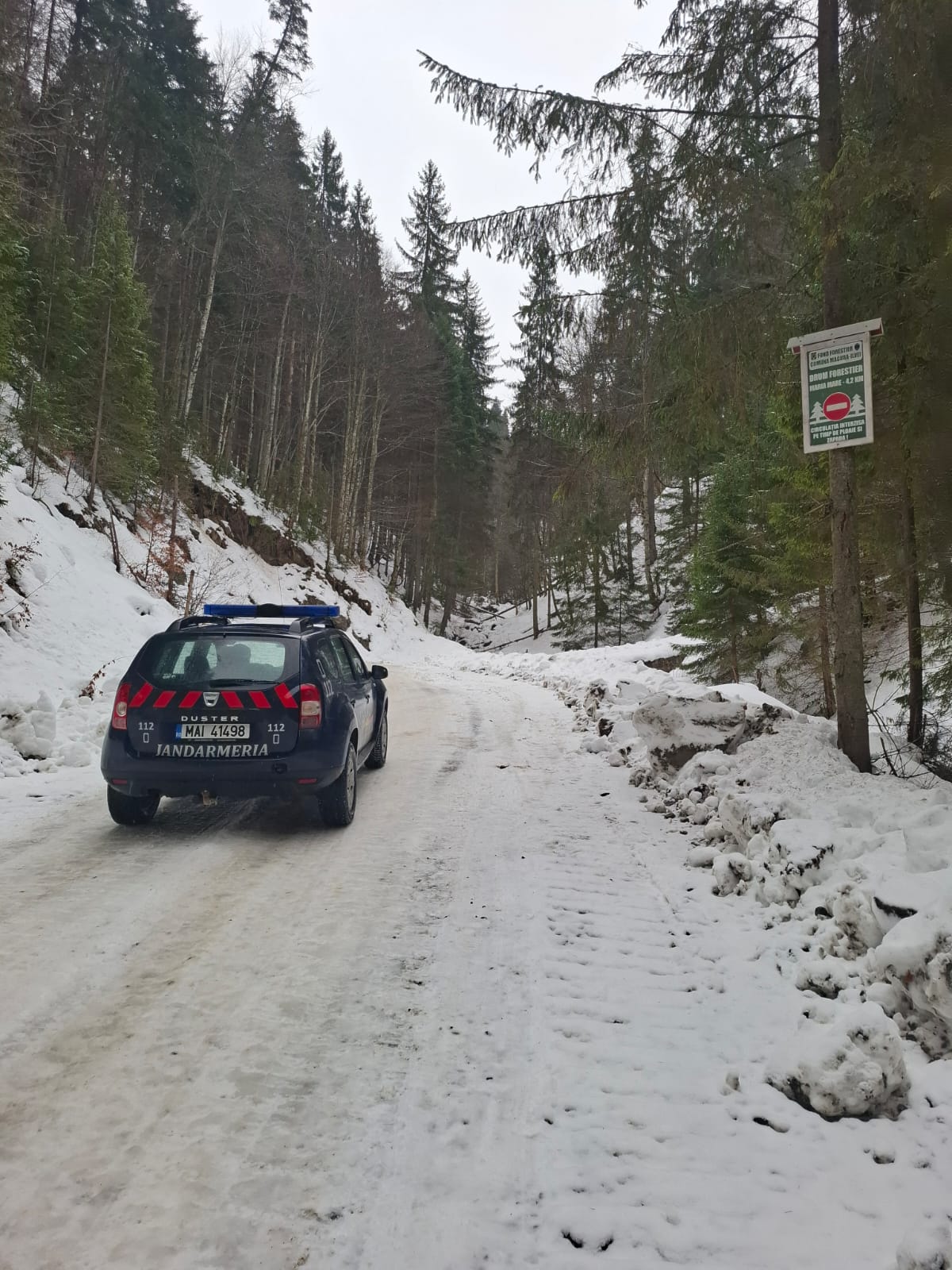 ”Jandarmii montani din Rodna avertizează că drumurile forestiere sunt acoperite cu gheață și sunt greu accesibile