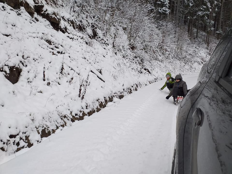 Zăpada frumos depusă aduce și mai multă bucurie la Alpina Blazna. Acolo unde se poate da cu săniuța. Și cine știe, poate în curând, chiar și cu schiurile.