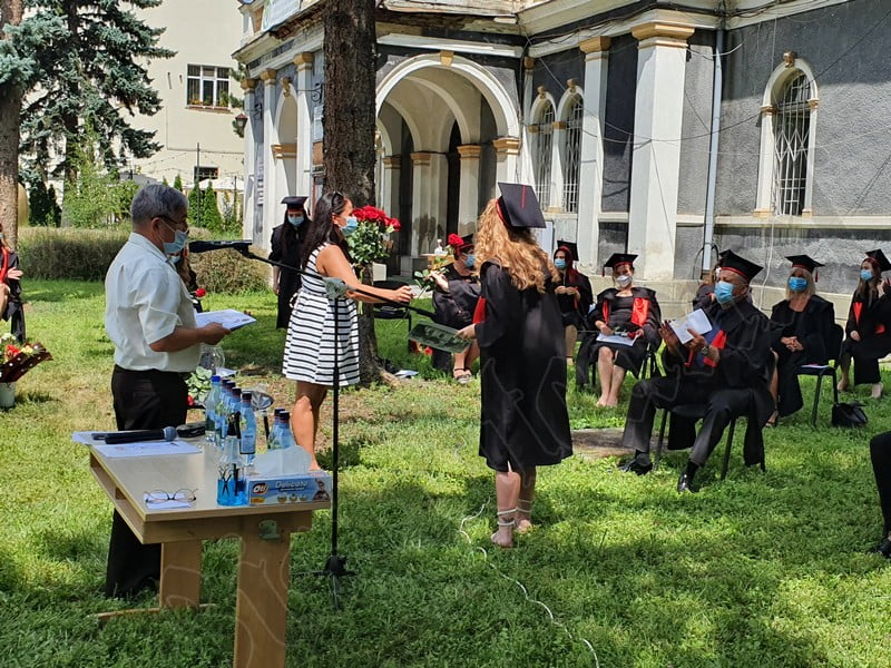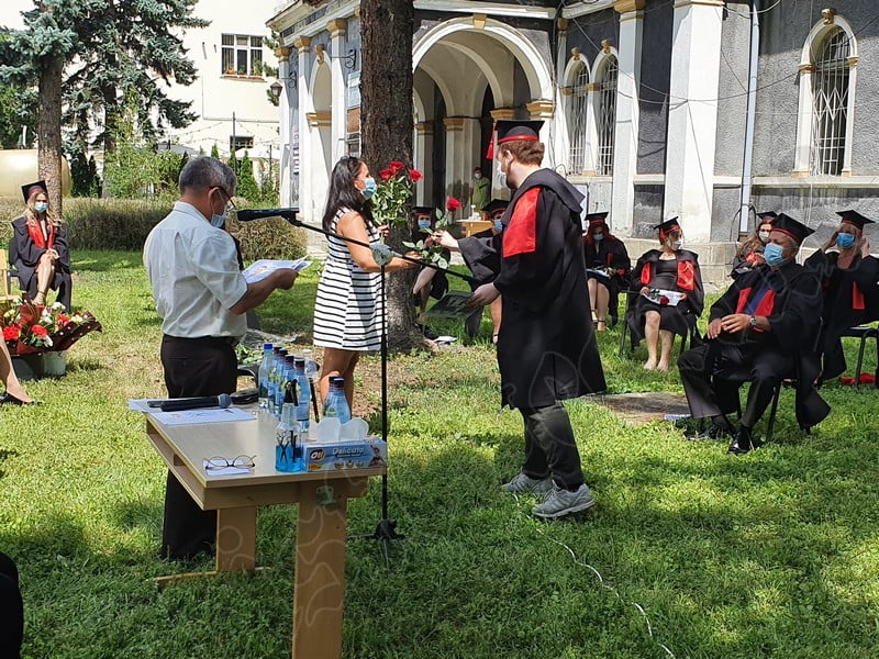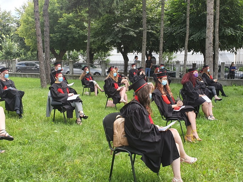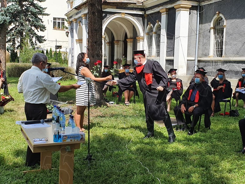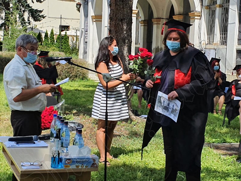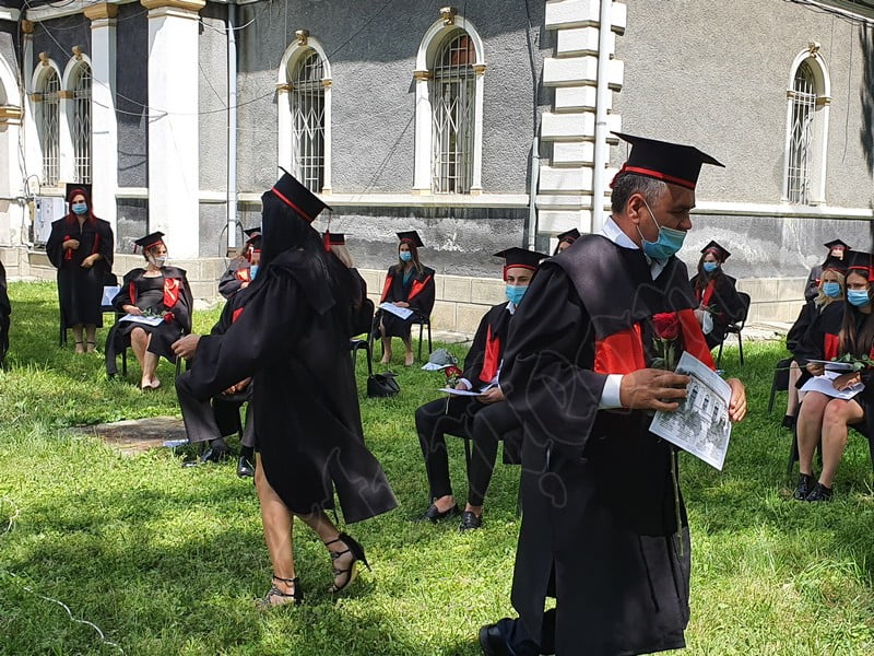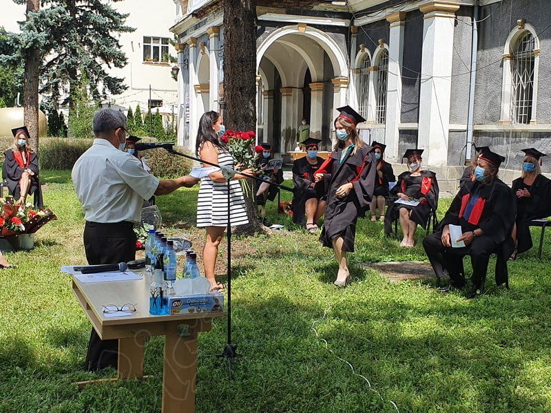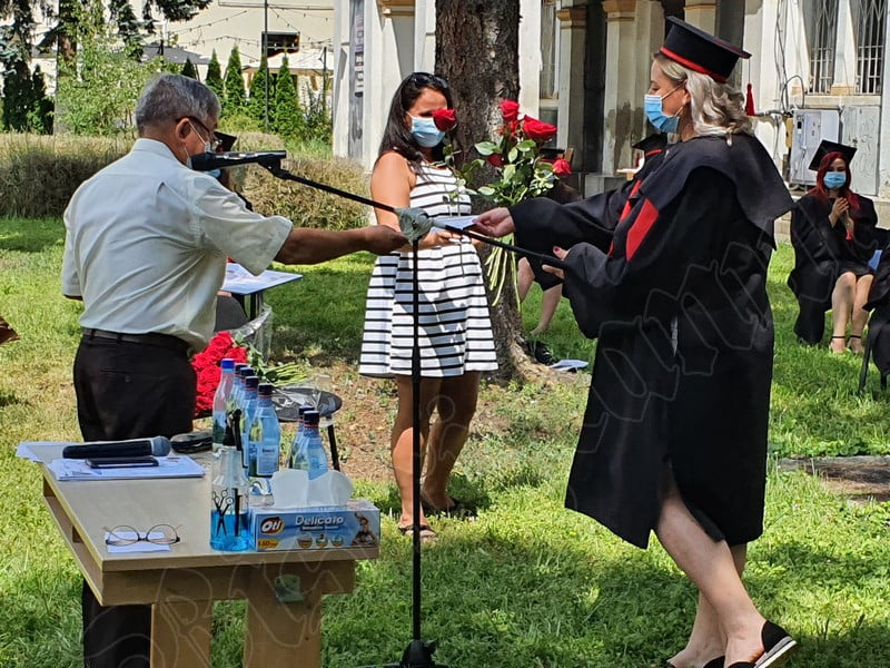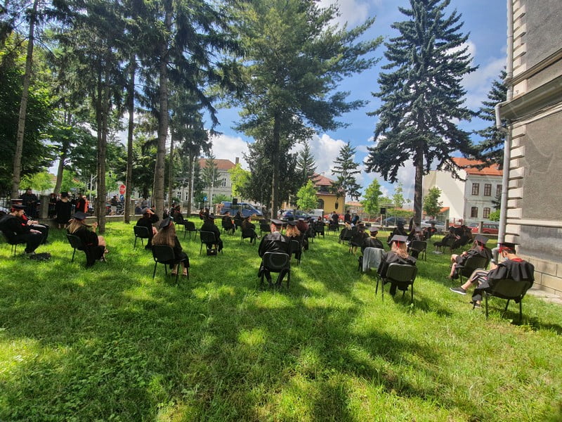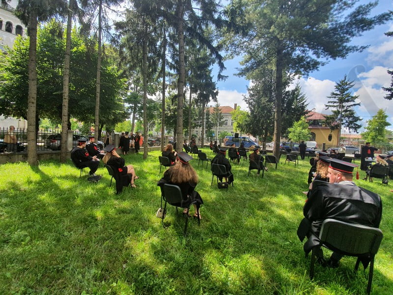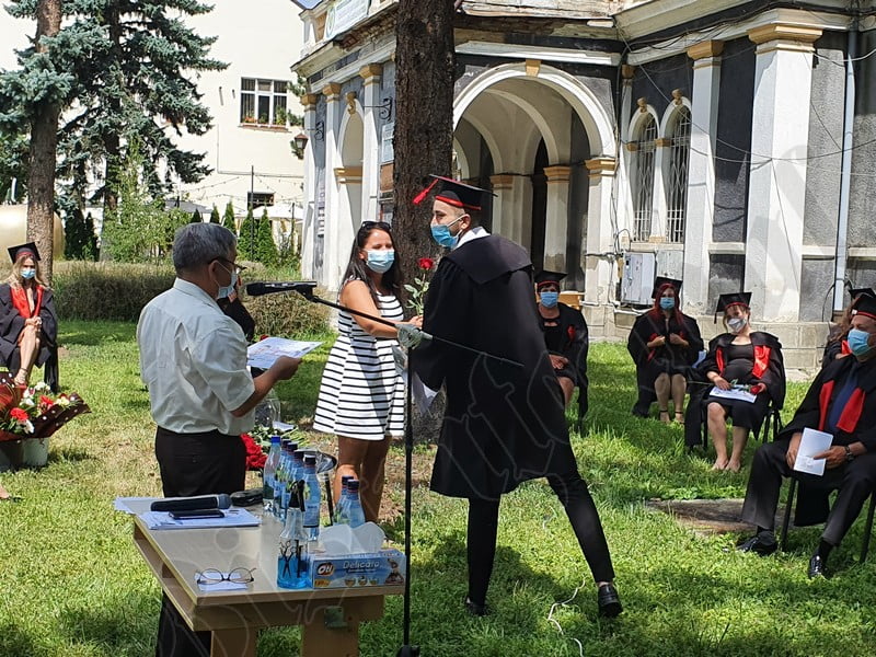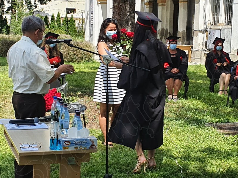 Îmbrăcați în robe negre, cu eșarfe roșii, cu toca pe cap, cu masca pe fețe, cu zâmbete și lacrimi în colțutile ochilor, absolvenții s-au bucurat că pot să-și ia rămas bun, unii de la alții, chiar și în condițiile date.