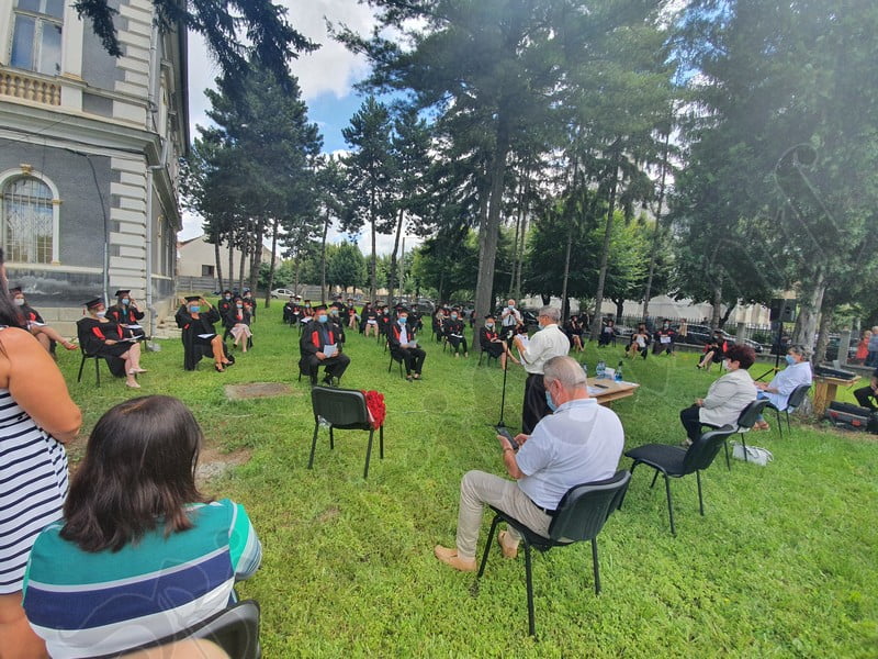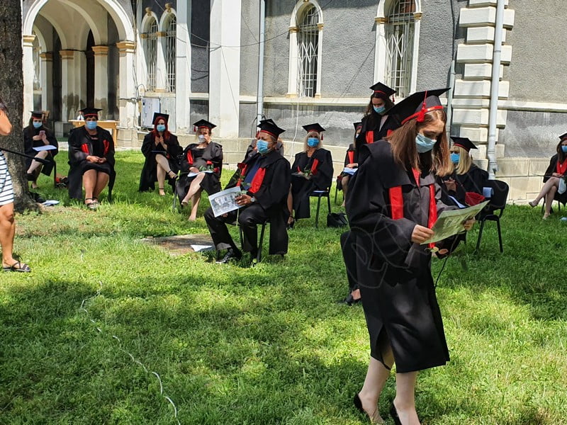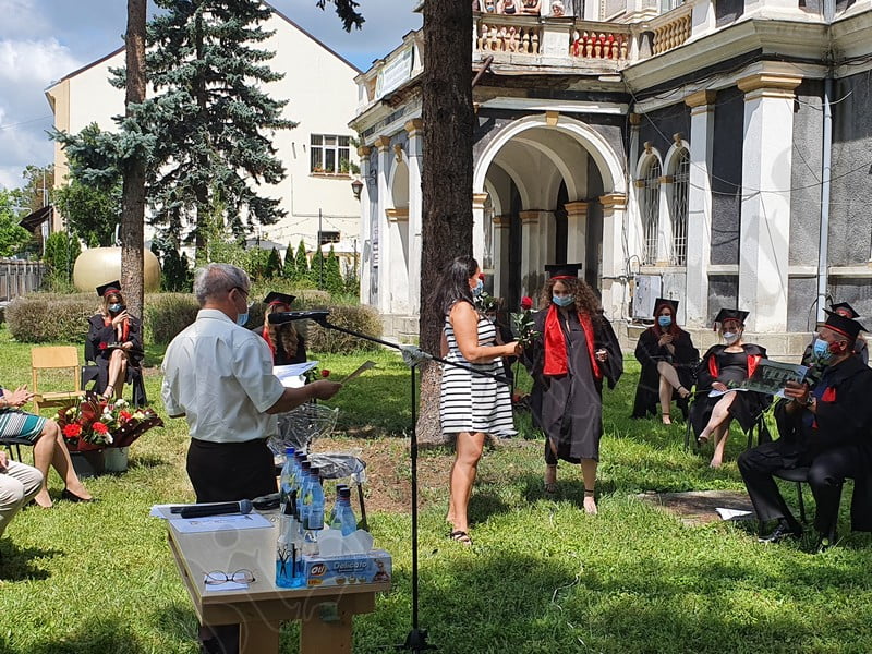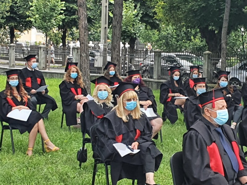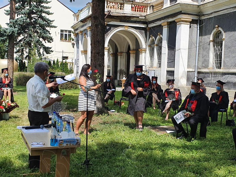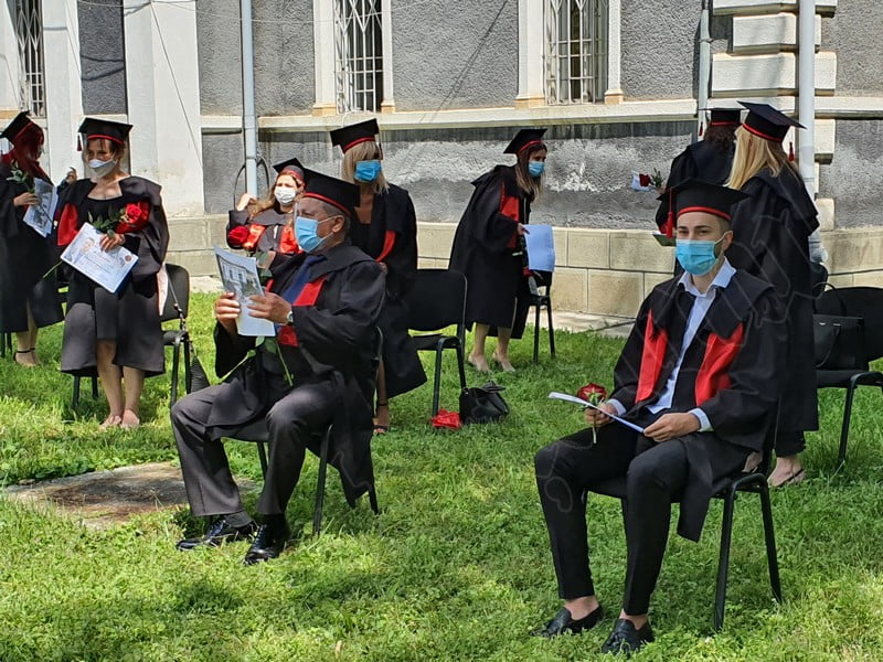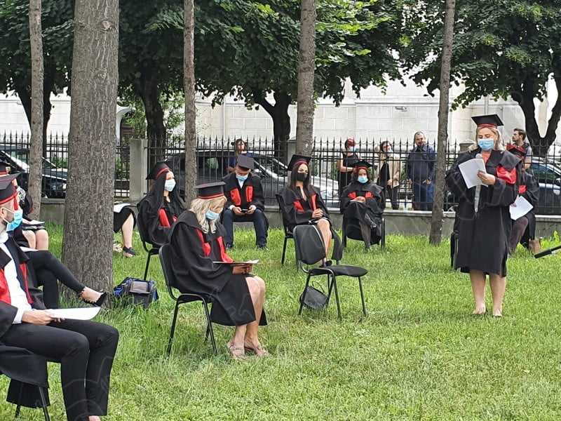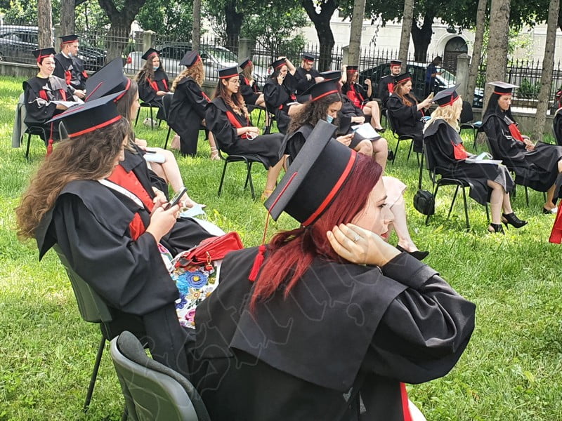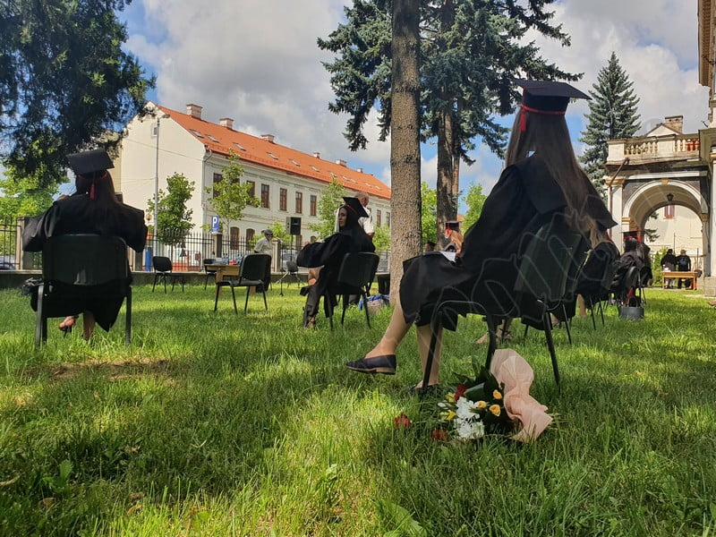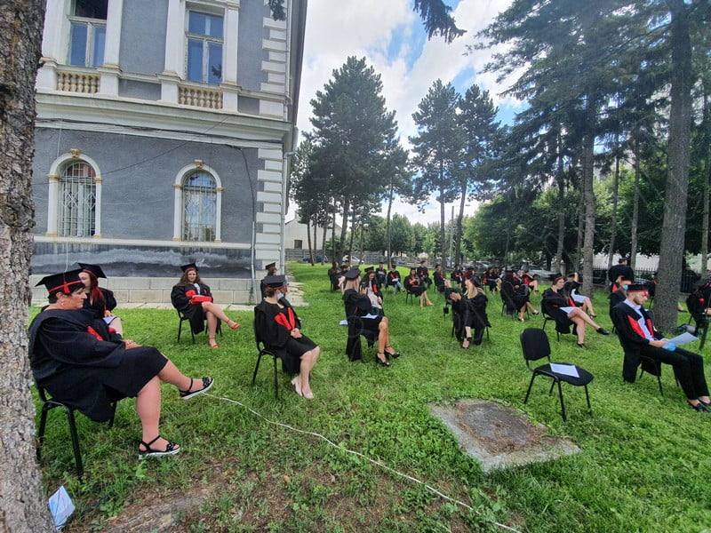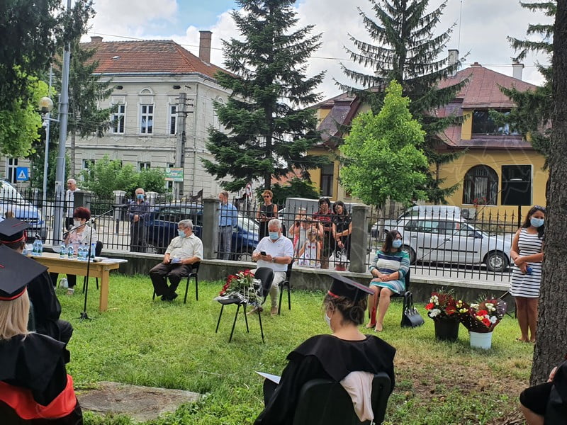 Îmbrăcați în robe negre, cu eșarfe roșii, cu toca pe cap, cu masca pe fețe, cu zâmbete și lacrimi în colțutile ochilor, absolvenții s-au bucurat că pot să-și ia rămas bun, unii de la alții, chiar și în condițiile date.