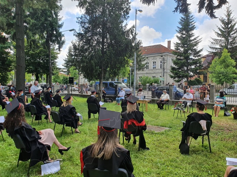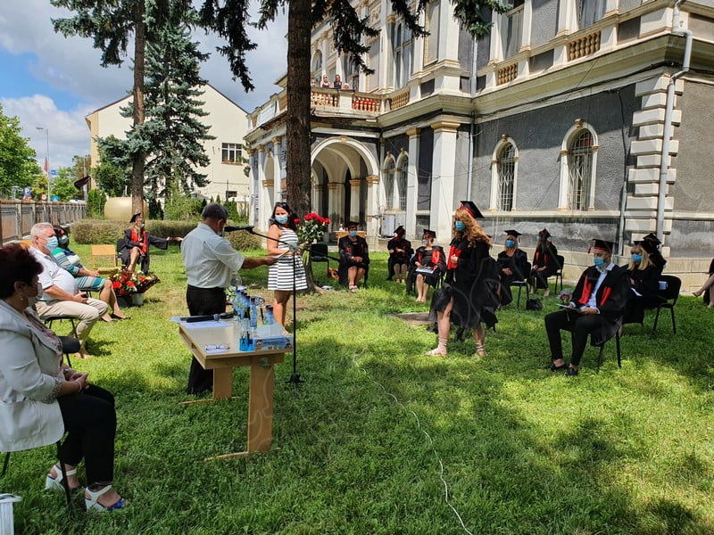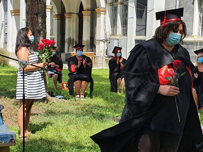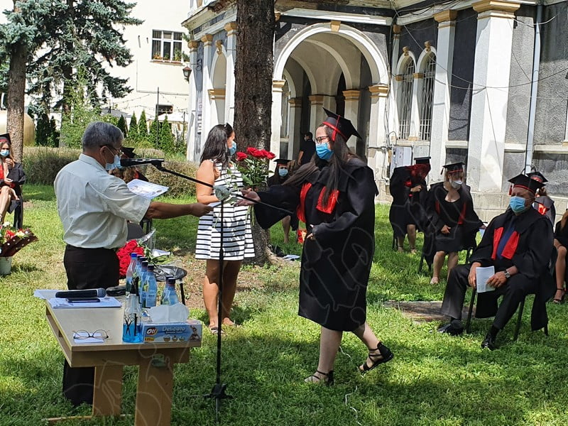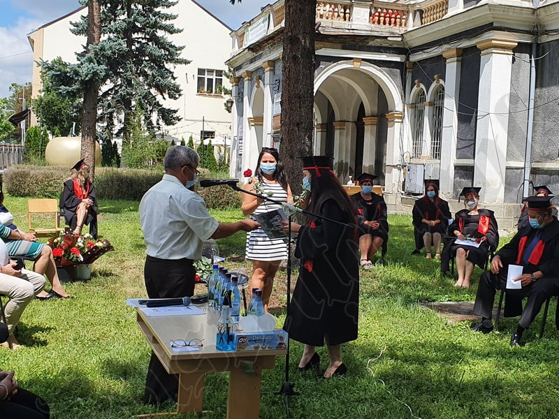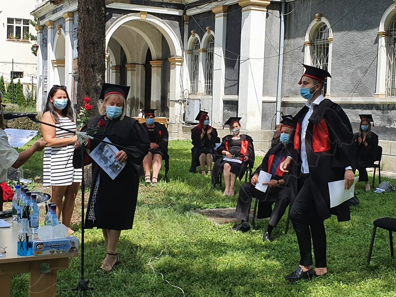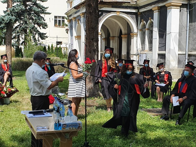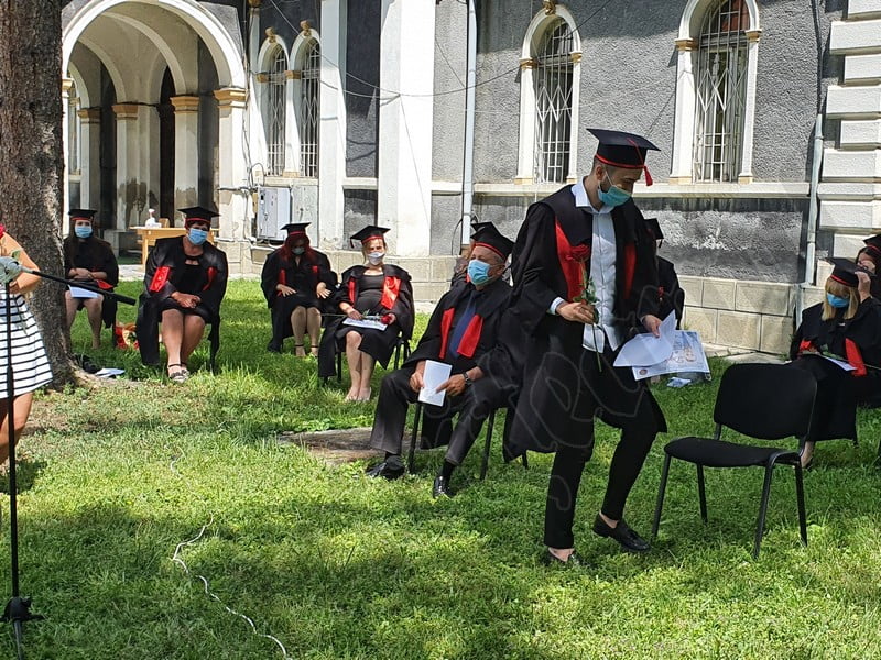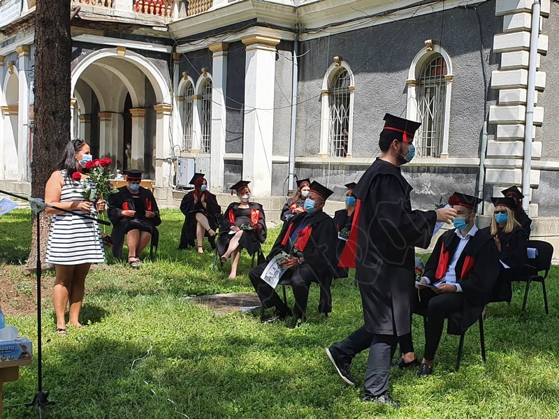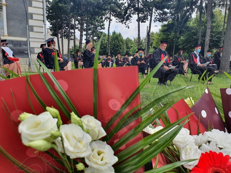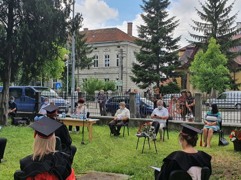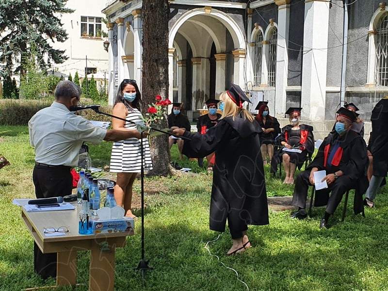 Îmbrăcați în robe negre, cu eșarfe roșii, cu toca pe cap, cu masca pe fețe, cu zâmbete și lacrimi în colțutile ochilor, absolvenții s-au bucurat că pot să-și ia rămas bun, unii de la alții, chiar și în condițiile date.