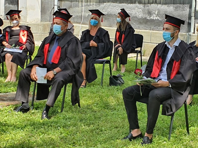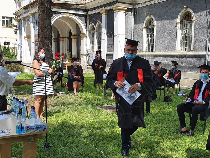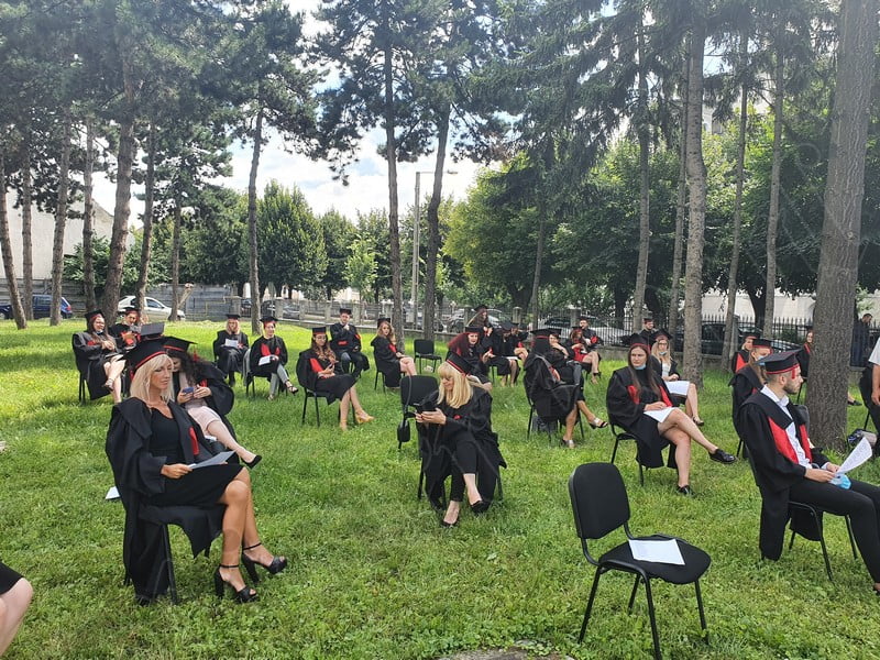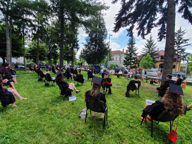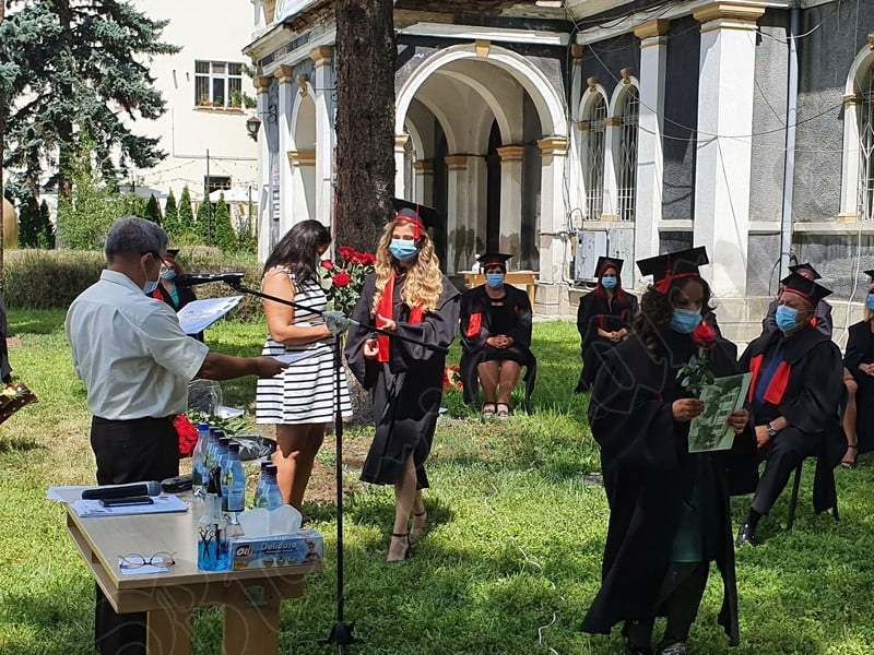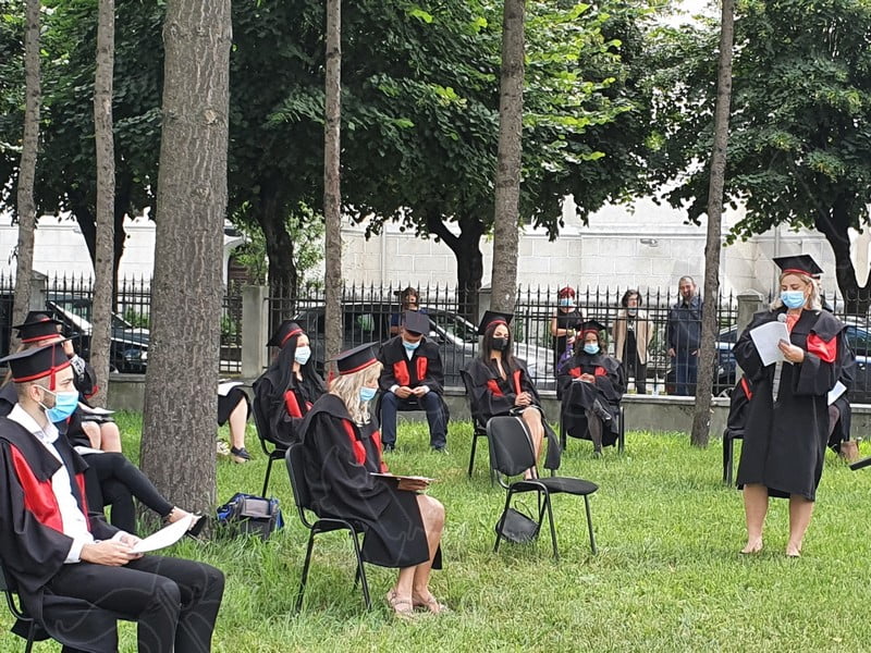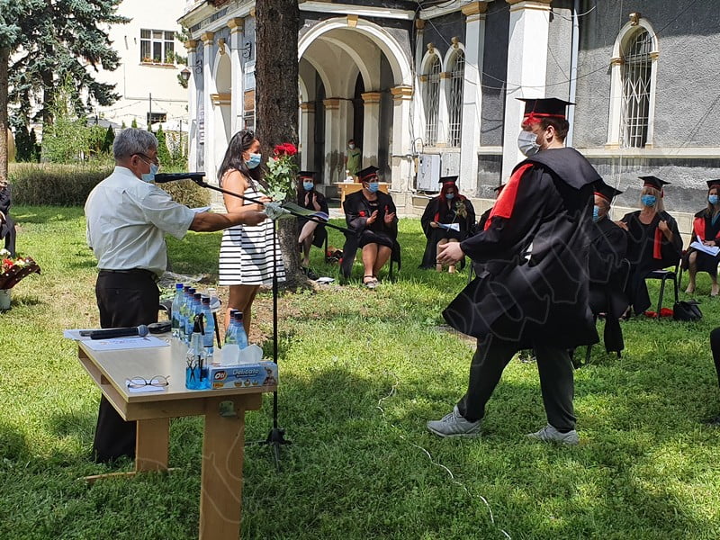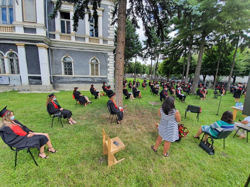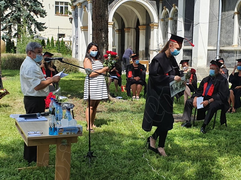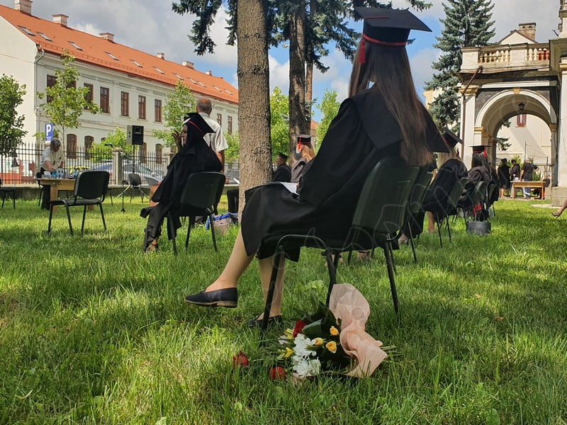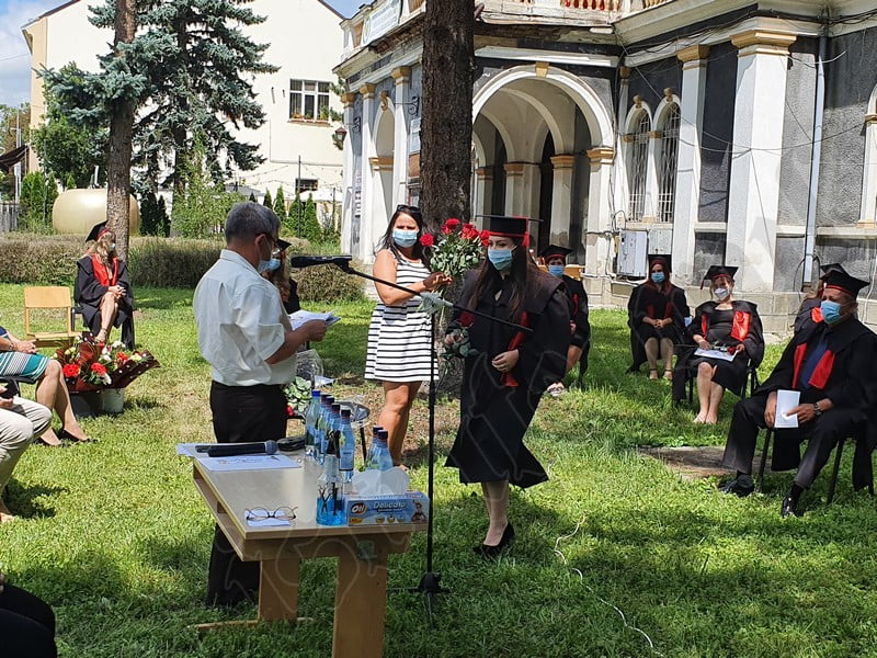 Îmbrăcați în robe negre, cu eșarfe roșii, cu toca pe cap, cu masca pe fețe, cu zâmbete și lacrimi în colțutile ochilor, absolvenții s-au bucurat că pot să-și ia rămas bun, unii de la alții, chiar și în condițiile date.