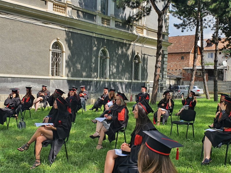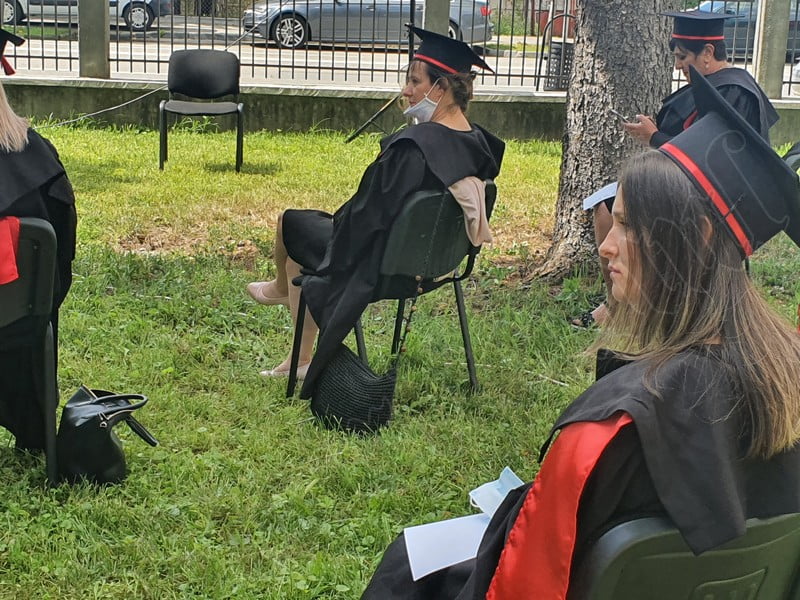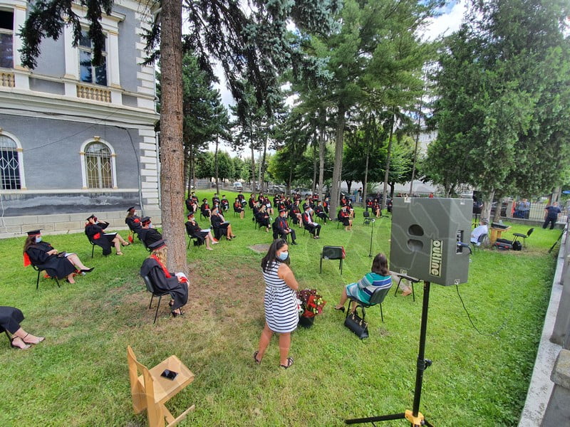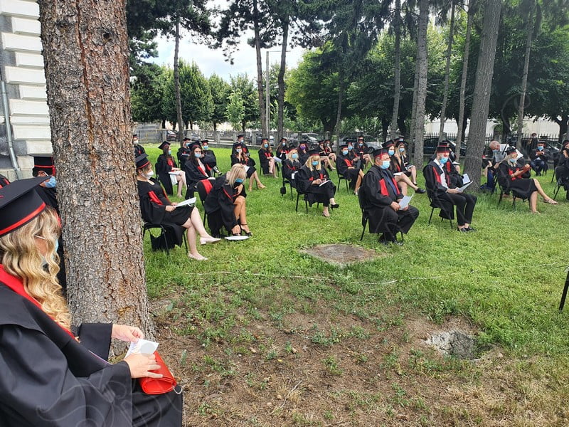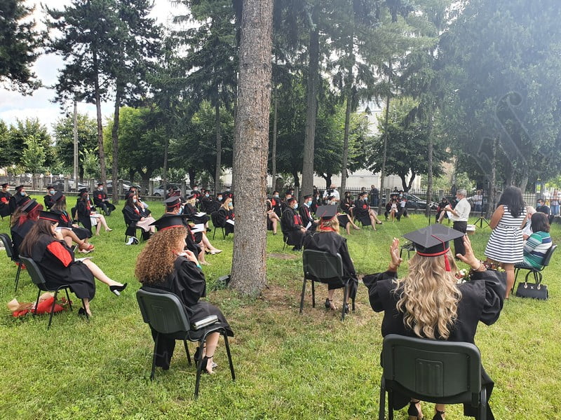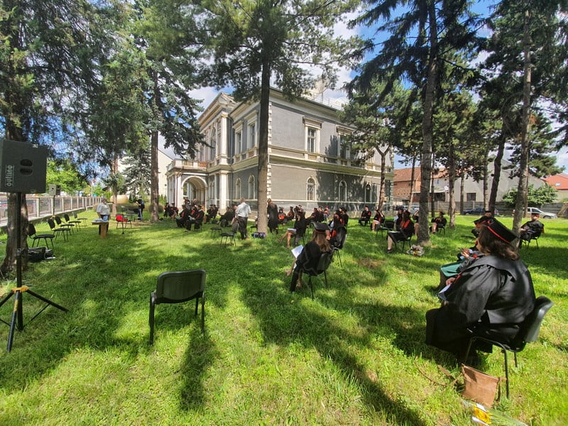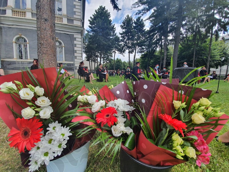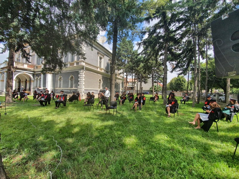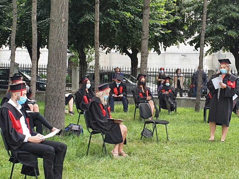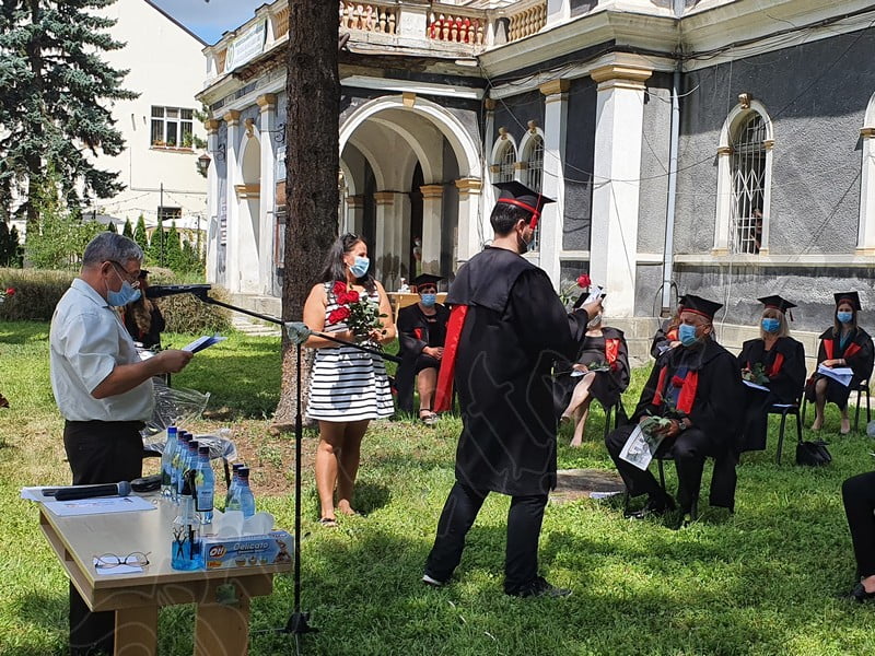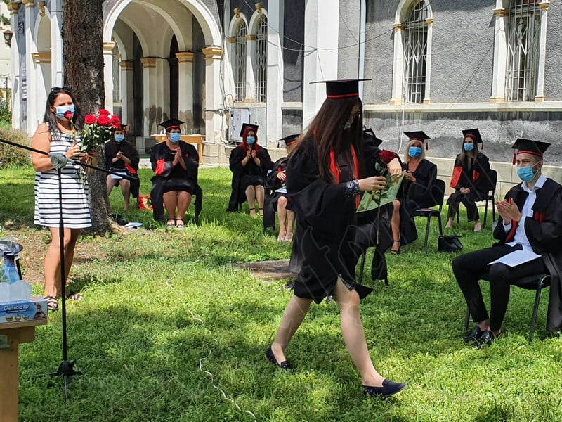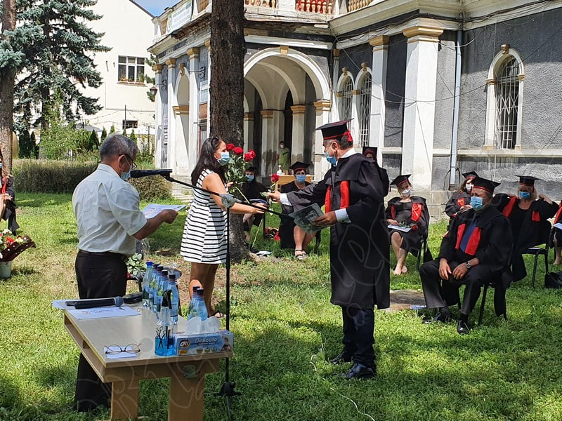 Îmbrăcați în robe negre, cu eșarfe roșii, cu toca pe cap, cu masca pe fețe, cu zâmbete și lacrimi în colțutile ochilor, absolvenții s-au bucurat că pot să-și ia rămas bun, unii de la alții, chiar și în condițiile date.