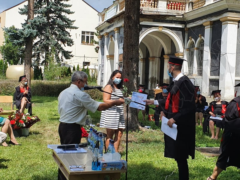 ”La insistențele șefelor celor două clase de absolvenți, am decis să organizăm totuși o festivitate de absolvire. Sunt 47 de absolvenți, clasele III A și III B, asistenți medicali generaliști. Mă bucur că totuși am găit o variantă rezonabilă ca să-i sărbătorim. Mi-a fost dat să trăiesc și o astfel de situație. Nu m-am gândit NICIODATĂ că se poate întâmpla un astfel de fenomen. Iată că acest dușman invizibil ne-a supus și trebuie să găsim soluții să nu închidem chiar tot. Ci să funcționăm în condițiile de igienă și distanțare ca să nu ne facem rău unii la alții. Noi îi lansăm pe apă. De aici, ei vor trebui să aplice ceea ce au învățat și să salveze” a explicat directorul Alexandru Câțcăuan.