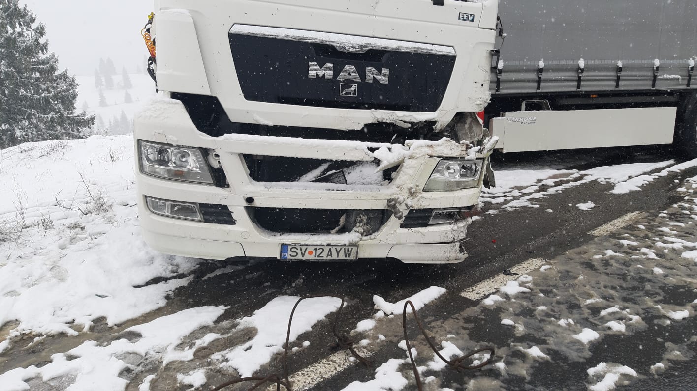 „Un bărbat din localitatea Apahida, județul Cluj, în timp ce conducea pe direcția de mers Suceava – Bistrița, într-o curbă, din cauza neadaptării vitezei la condițiile de drum și condițiile meteo, a pătruns pe contrasens, cu remorca, colizionând cu un alt autotren care circula din sens opus, condus de un bărbat din județul Suceava. Din accident au rezultat doar pagube materiale. Autotrenurile erau echipate corespunzător. Ambii șoferi au fost testați alcoolscopic, rezultatele fiind negative. Nu s-a impus sancționarea pe baza ordonanțelor militare”, a declarat, pentru Bistrițeanul.ro, purtătorul de cuvânt al IPJ BN, Crina Sîrb.