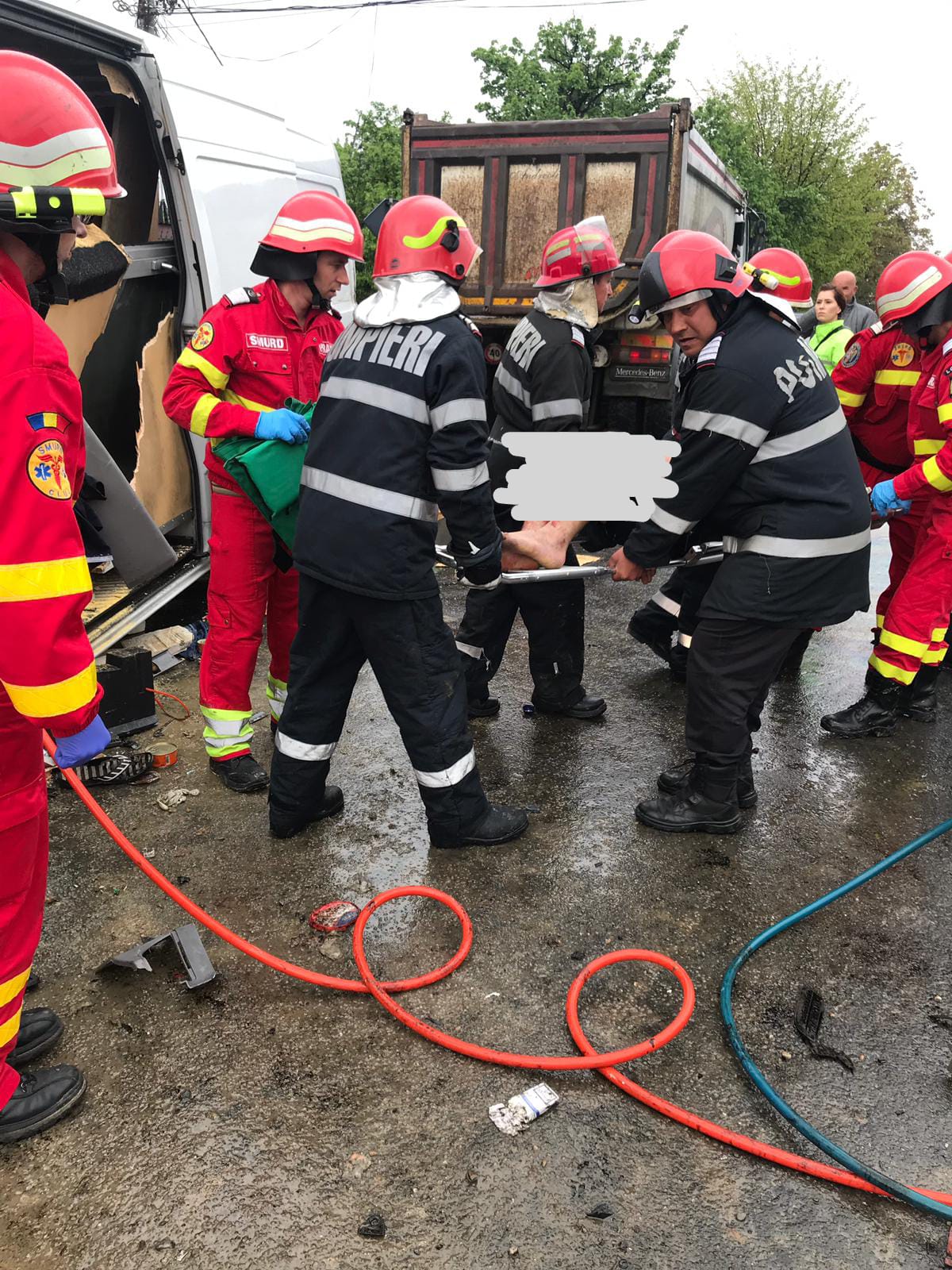 Două persoane au rămas încarcerate între fiarele contorsionate ale microbuzului, având nevoie de ajutorul pompierilor militari ISU pentru a se elibera. Este vorba despre o tânără de 18 ani și șoferul de 21 de ani.