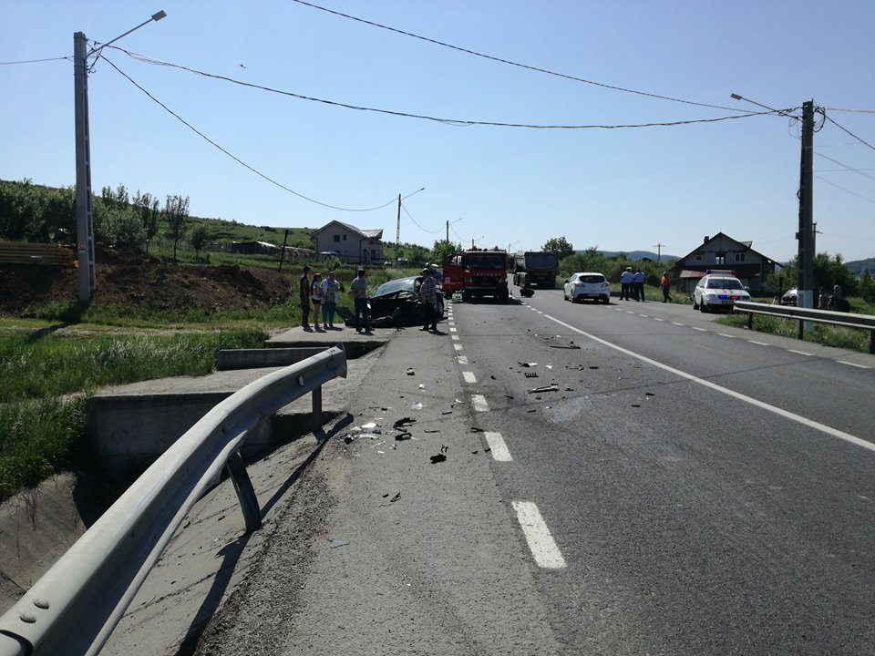 Accidentul a avut loc la ieșire din Crainimăt, înspre Cluj. Impactul a fost foarte puternic, iar șoferul autoturismului, din Ilișua, a scăpat ca prin urechile acului după ce a acroșat un camion. Acesta susține că, în drum spre Bistrița, a pierdut controlul volanului din cauză că i-a explodat un cauciuc, acroșând roata unei basculante care circula pe sensul opus. După impactul cu basculanta, mașina a fost proiectată într-un parapet și apoi într-un cap de pod. Motorul mașinii a fost aruncat la aproximativ 20 de metri în drum după izbitură.