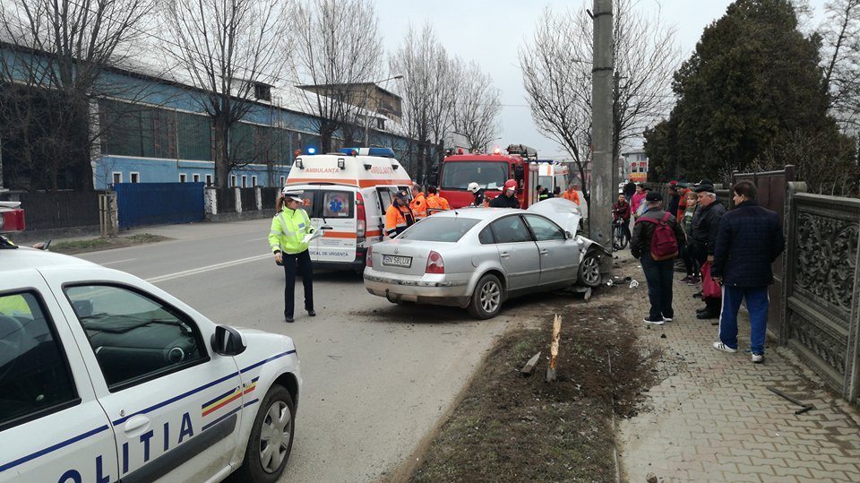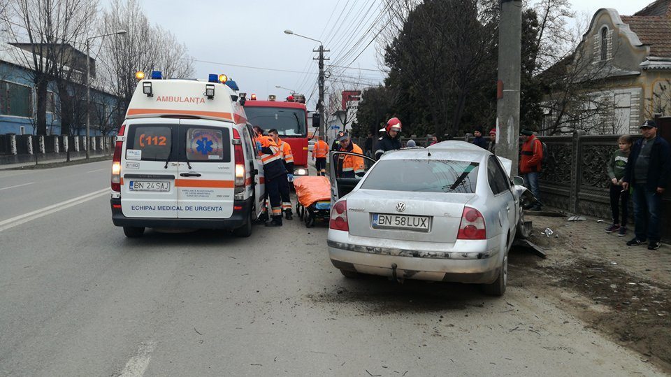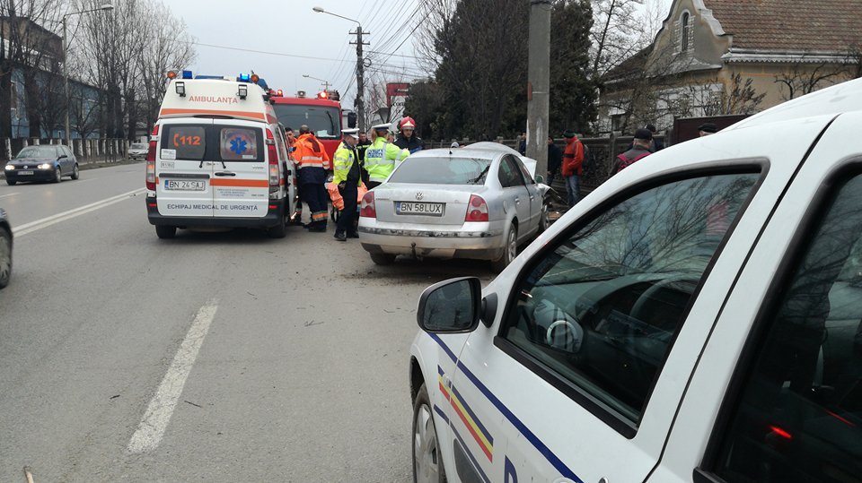 Echipaje ale Ambulanței, Pompierilor și Poliției Rutiere au fost solicitate să intervină la un accident rutier. Acesta a avut loc pe strada Libertății, în fața fabricii de oțet.
