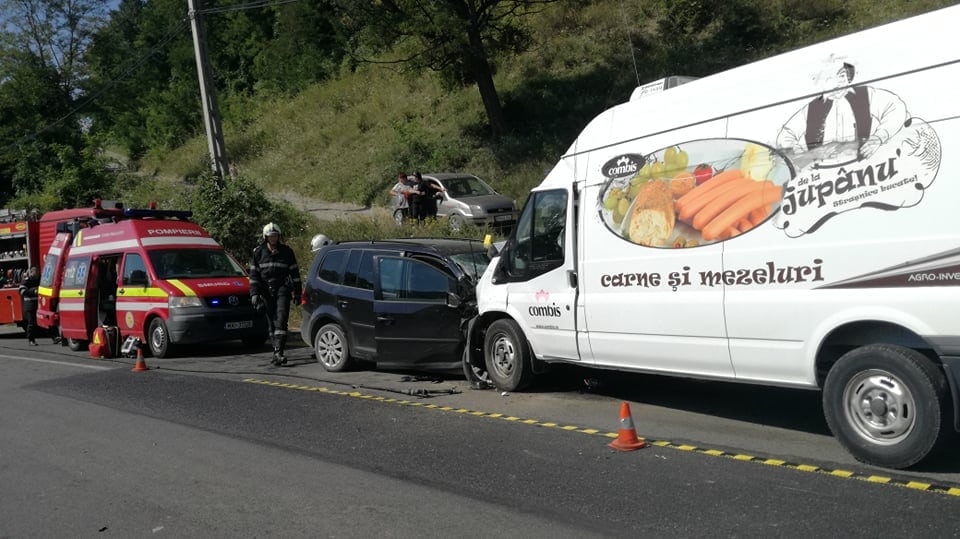 În accident a fost implicat un autoturism și o autoutilitară a unei firme de prelucrare a cărnii.
