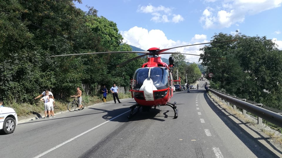 La fața locului a fost solicitat și un elicopter SMURD, care a aterizat chiar pe șosea.