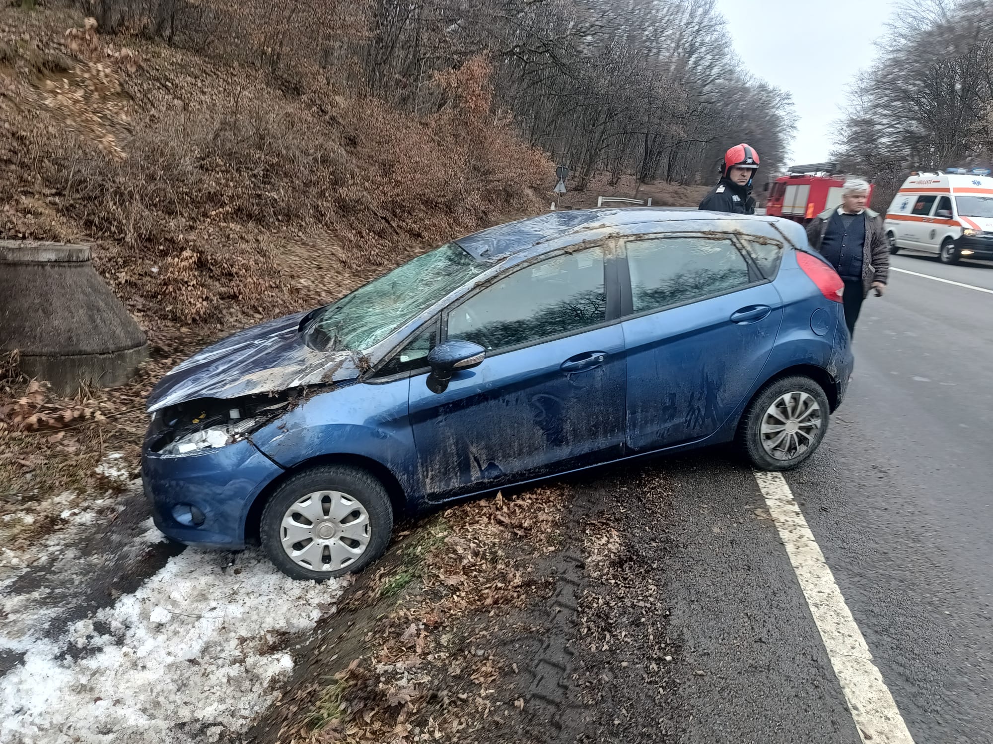 Participanții la trafic l-au scos pe șofer din autoturism. Un echipaj al Serviciului de Ambulanță Județean a intervenit la fața locului.