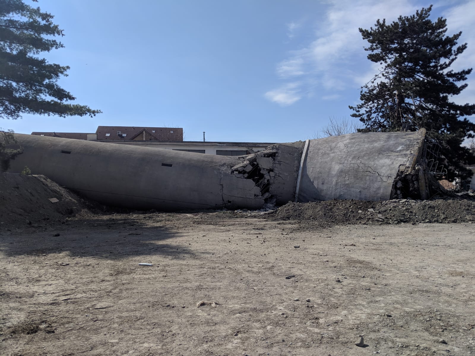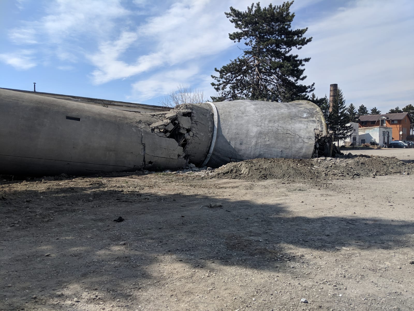 FOTO/VIDEO – Acțiune spectaculoasă de dărâmare a unui turn de apă! Mastodontul, pus la pământ în câteva secunde