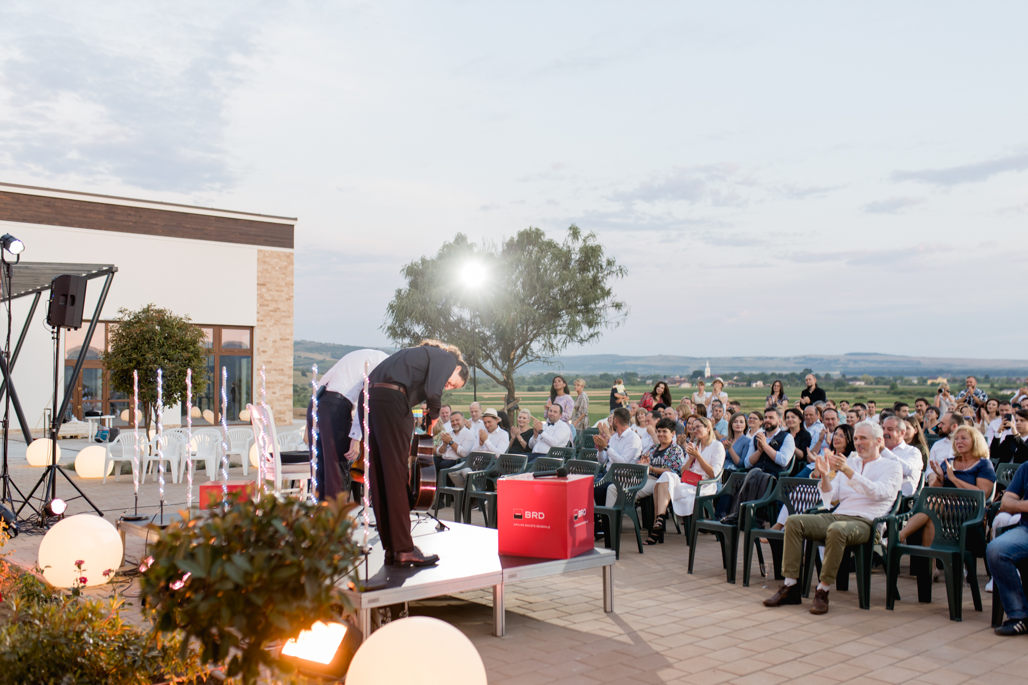 Sunetele de vioară și chitară, care s-au întins pe mai bine de o oră, au putut fi savurate alături de un pahar de vin, producție a Cramei Jelna, care a fost oferit din partea casei. Sute de persoane au răspuns invitației și s-au bucurat de talentul și vioara Stradivarius a lui Alexandru Tomescu, dar și de un apus de soare de poveste.
