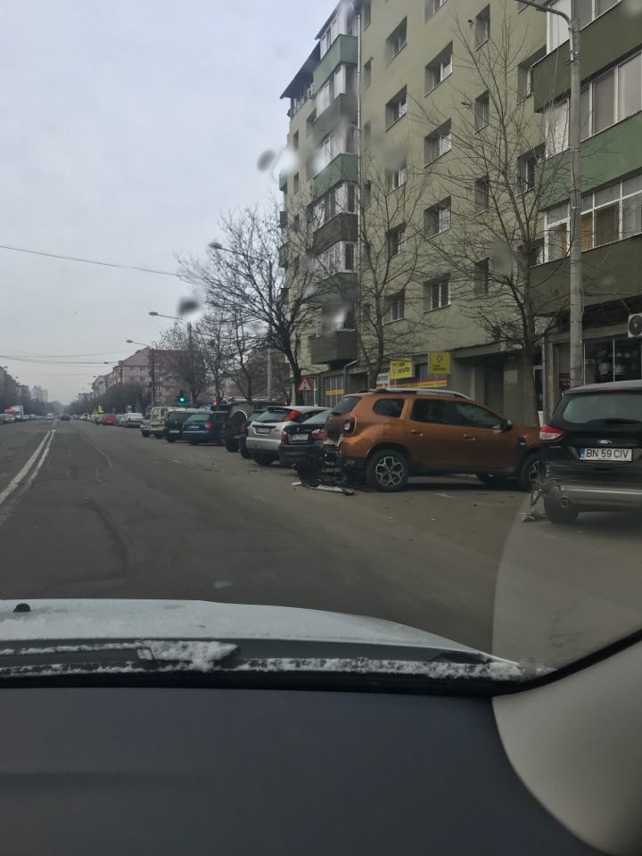 Accidentul s-a produs noaptea trecută, în zona Lama. Din primele informații, un tânăr de 30 de ani din Bistrița a reușit să avarieze nu mai puțin de 5 mașini parcate regulamentar în zonă.