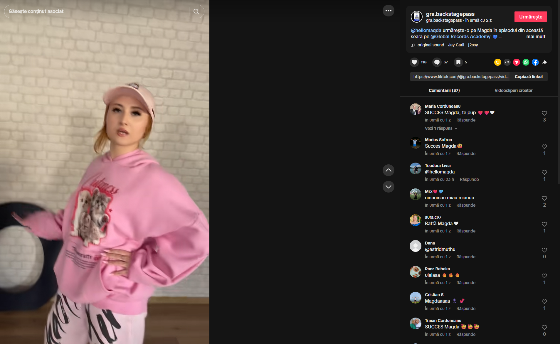 A cucerit jurații de la Vocea României și pe cei de la X- Factor. Acum, tânăra bistrițeancă a fost aleasă printre cei 16 concurenți în prima ediție a showului concurs Global Records Academy. Competiția e exclusiv pe platforma TikTok. Săptămânal se elimină concurenți, în funcție de punctele obținute la diferite provocări și susținerea pe care o au pe platformă. Magda are nevoie de noi pentru premiul cel mare.