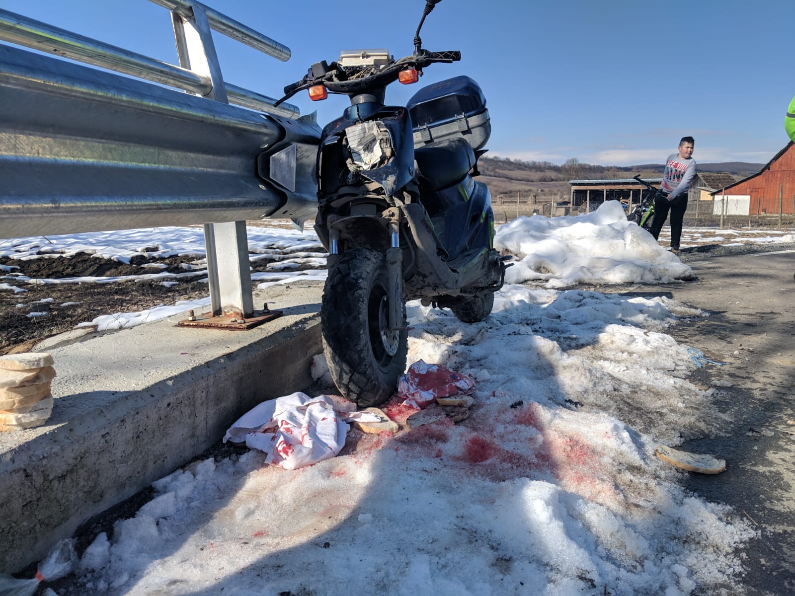 Accidentul s-a produs în urmă cu puțin timp, în Blăjenii de Jos. Un bărbat de 75 de ani din localitate se îndrepta spre casă cu scuterul, iar la un moment dat, într-o curbă acesta a pierdut controlul acestuia și a intrat într-un cap de pod.