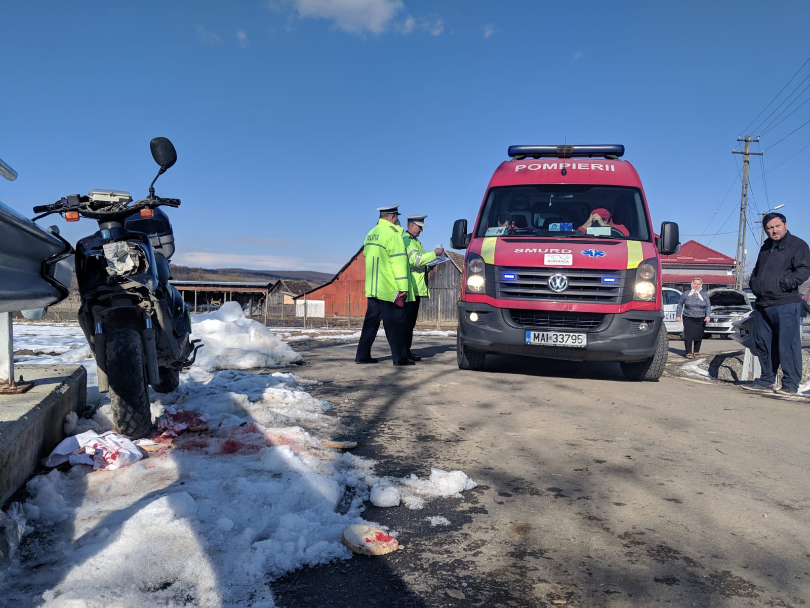 În urma impactului, scuterul a fost avariat, iar bărbatul a fost rănit, însă a fost găsit conștient de echipajul medical. Acesta a fost îngrijit la fața locului de un echipaj de terapie intensivă mobilă SMURD și cel mai probabil va fi transportat la spital pentru investigații suplimentare.