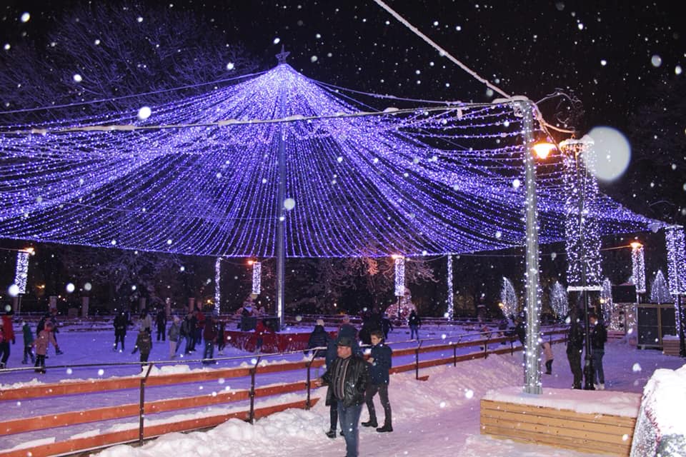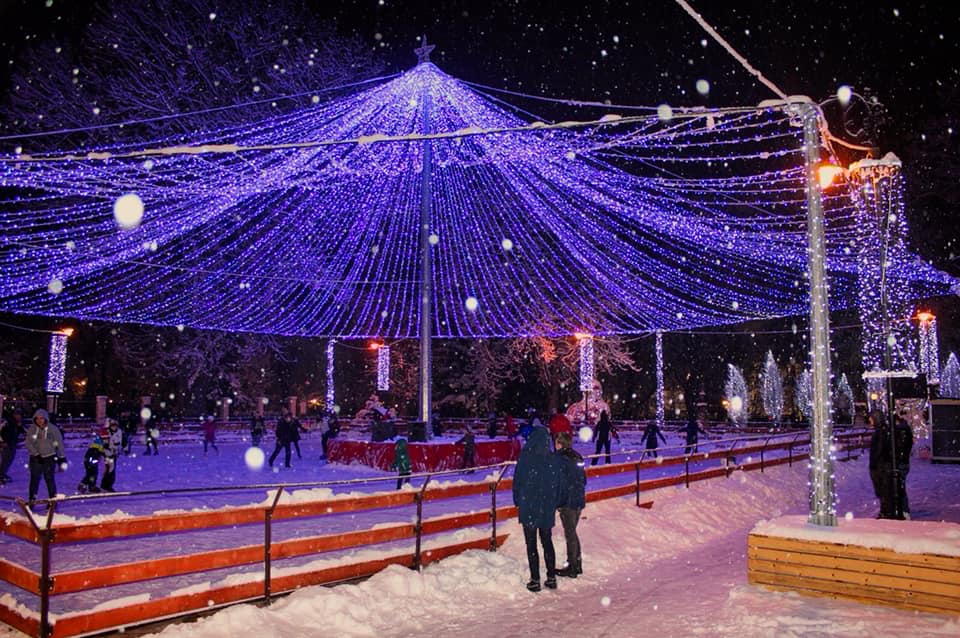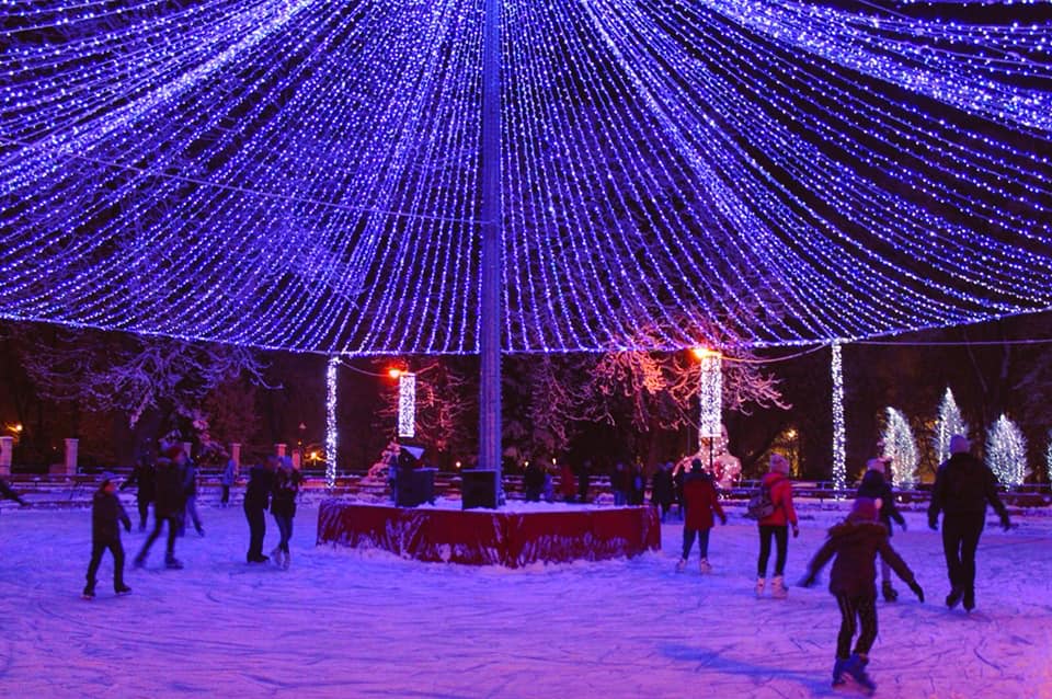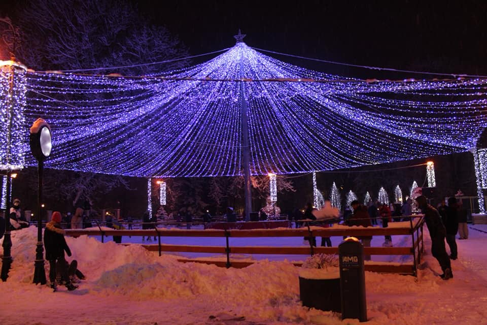 Cu mic, cu mare, s-au bucurat aseară, de vremea frumoasă și ninsoarea ca-n povești, să patineze sub bolta de luminițe.