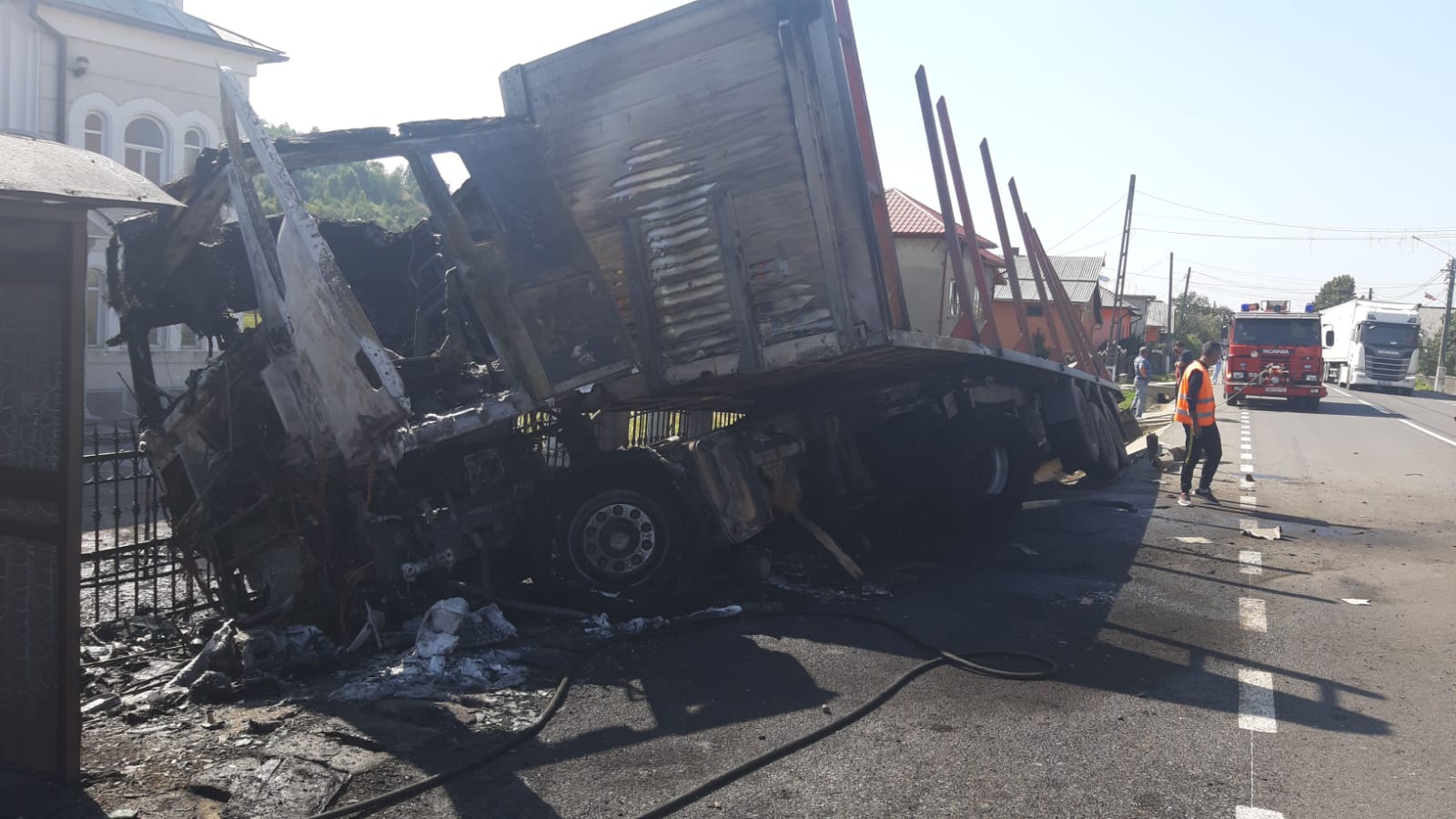 „Conducătorul auto al tirului refuză transportul la spital. Tirul nu era încărcat, a ars cabina acestuia în proporție de peste 90 %”, transmit reprezentanții ISU BN.