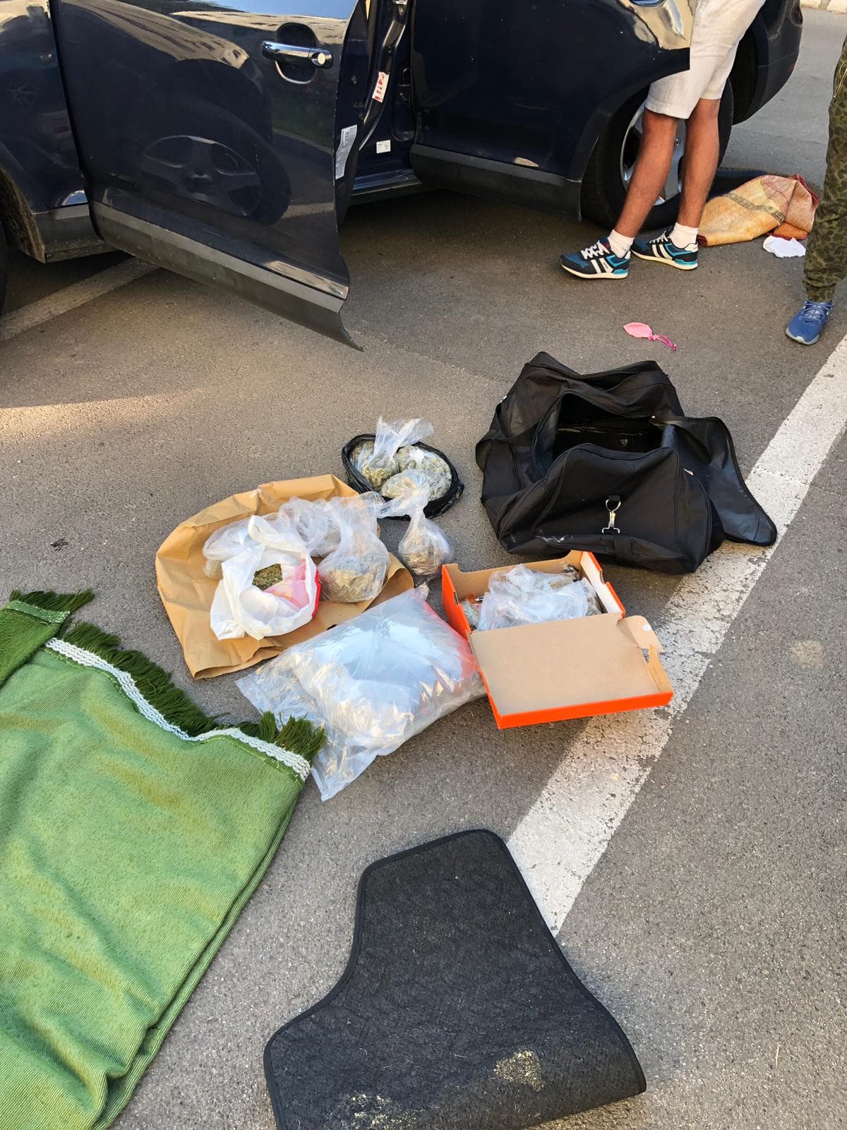 Doi tineri bistrițeni au fost prinși în trafic de polițiști. Mașina era plină de plante halucinogene. Cei doi tineri au fost duși la sediul poliției, alături de impresionanta captură.