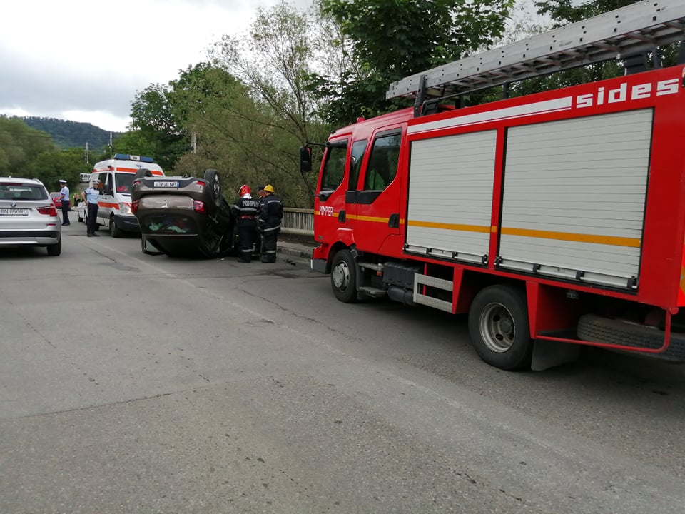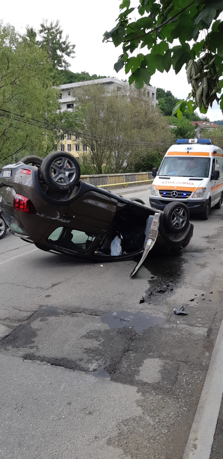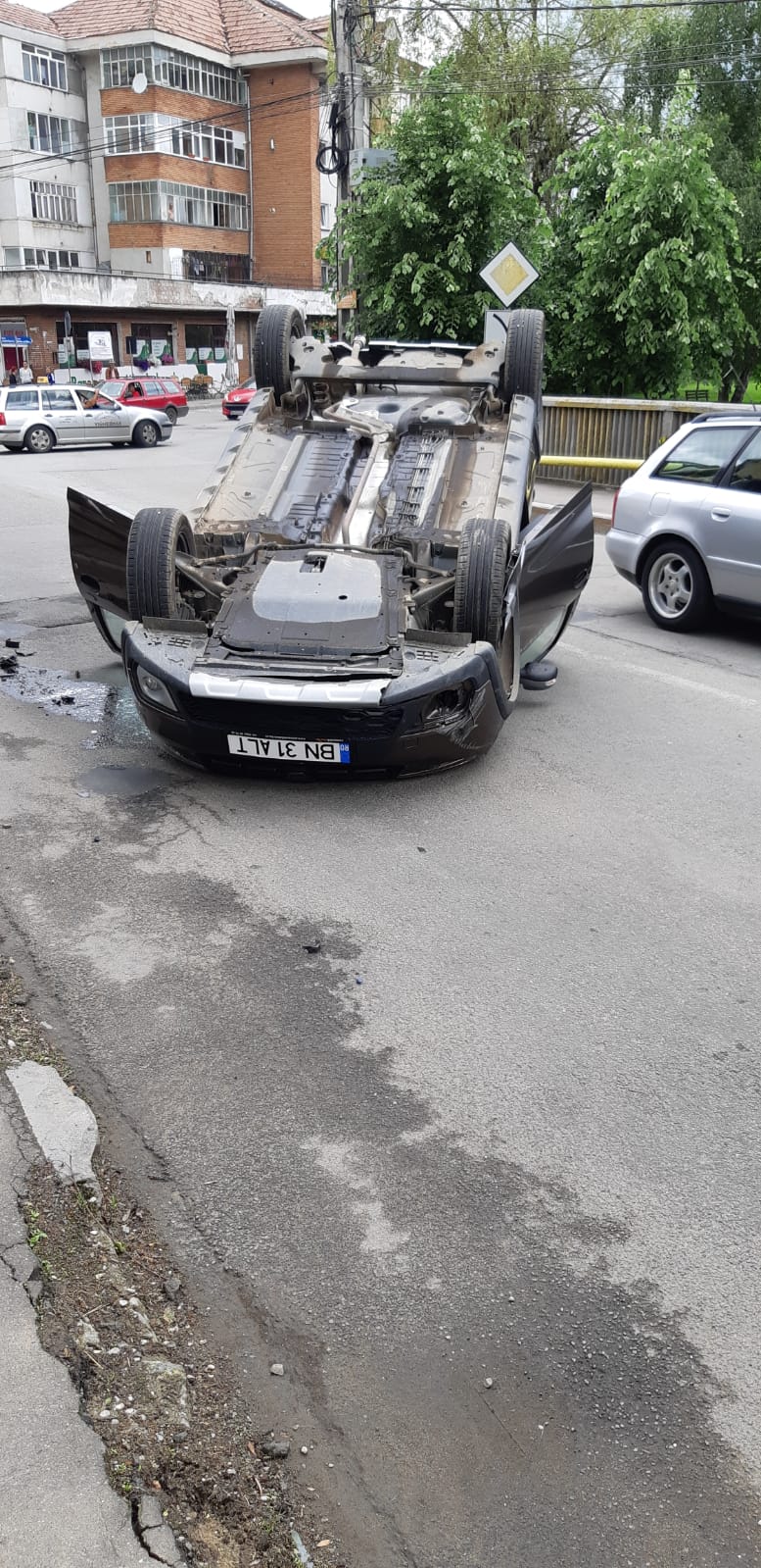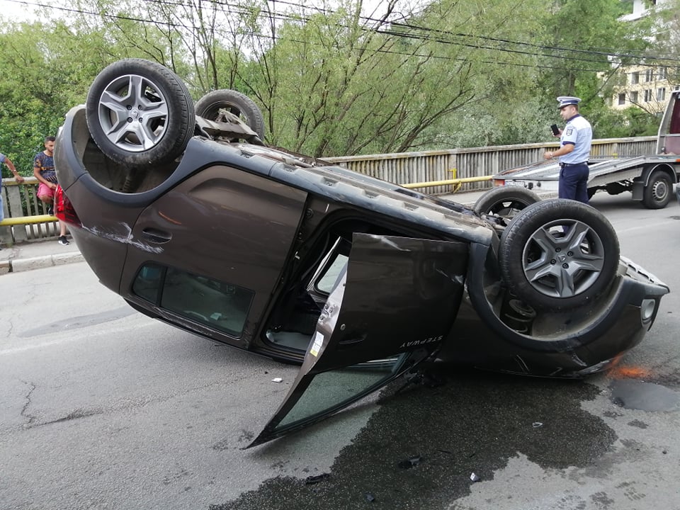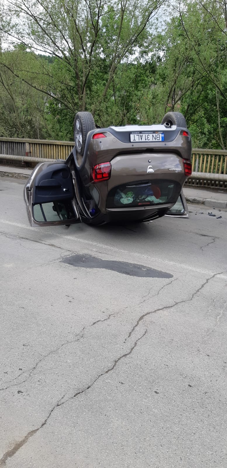 Un accident rutier a avut loc în urmă cu puțin timp, pe Podul Jelnei. O mașină a ajuns cu roțile în sus. Din fericire, șoferița, care era singură în mașină, a ieșit pe propriile picioare.