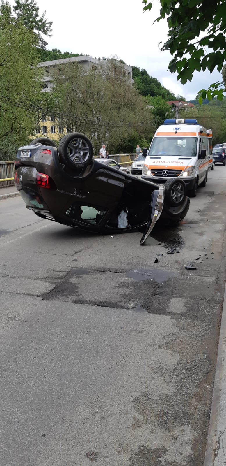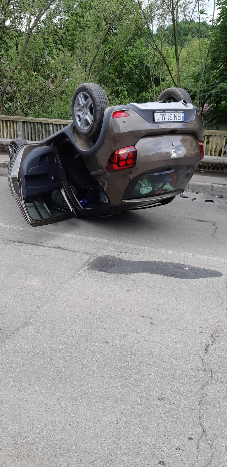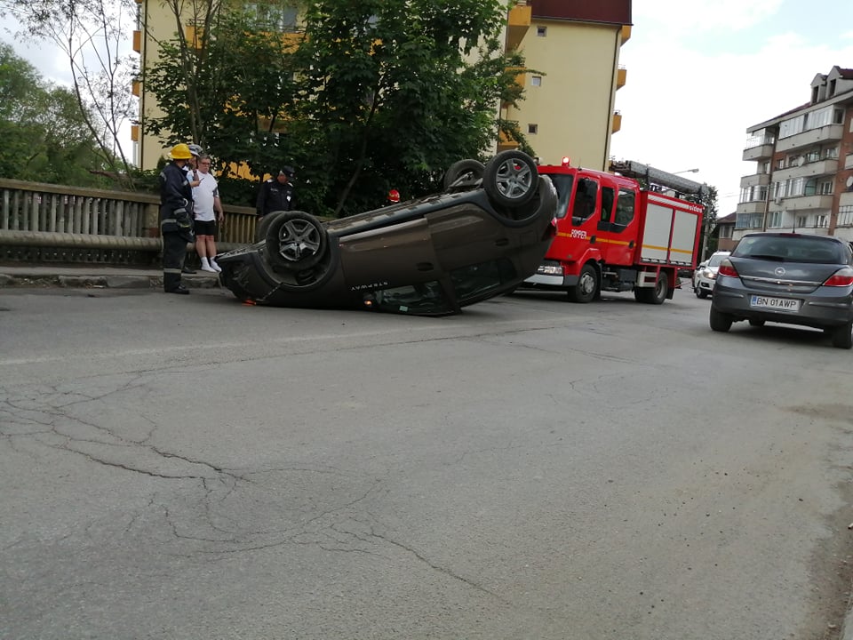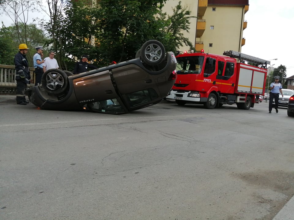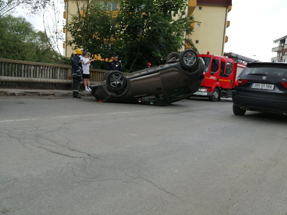 O bistrițeancă, de 65 de ani, ce locuiește la blocul galben de lângă podul Jelnei, a ieșit din parcare, a vrut să vireze dreapta, și în loc să apese frâna, a apăsat accelerația. Mașina a lovit o țeavă de gaz și s-a răsturnat cu roțile-n sus, exact pe pod.