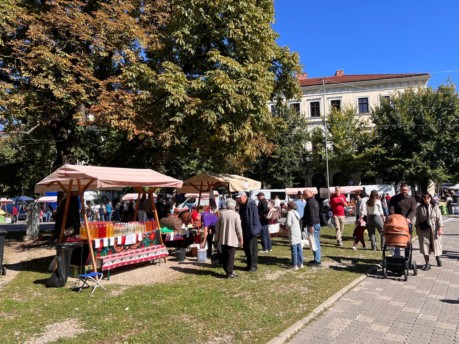 Pentru prima dată, evenimentul dedicat recoltei toamnei și a producătorilor locali – Toamna Bistrițeană, se desfășoară în centrul istoric al Bistriței. La piața ad-hoc din centrul orașului pot fi găsite fructe și legume de sezon, inclusiv roșii și castraveți, murături, lactate și chiar și castane coapte sau miere.